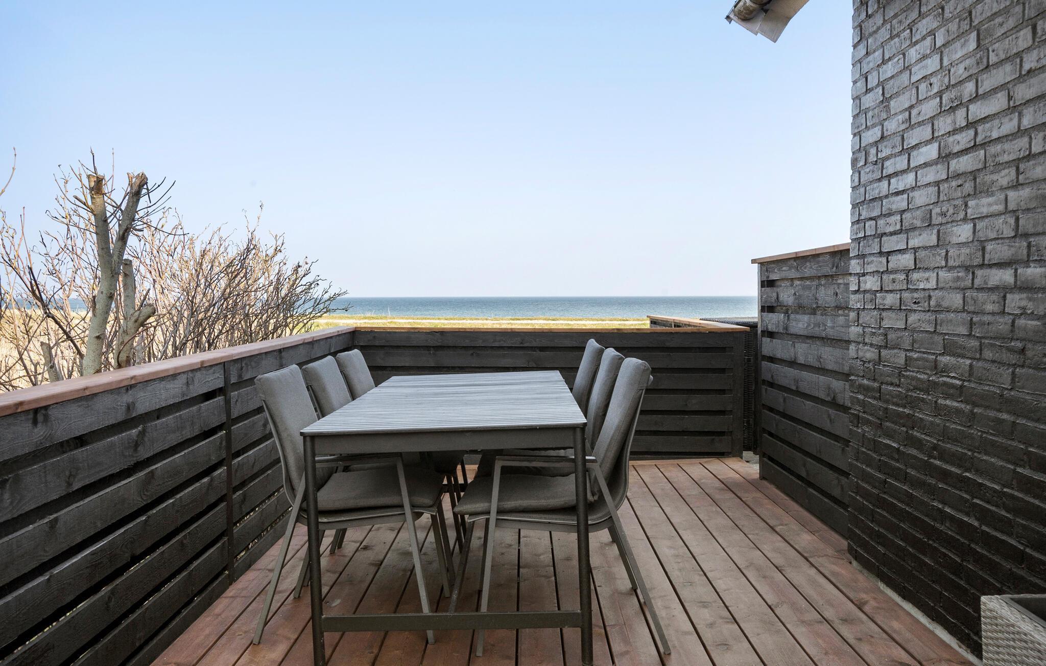 I den første række ned til Hasmark Strand byder dette enderækkehus jer velkommen på en fantastisk strandgrund. Tilbring en afslappende ferie sammen med jeres yndlingsperson i dette lyse og indbydende feriehus. I kan lave mad, slappe af eller spille kort ved bordet i stueetagen. 1. sal tilbyder jer en smuk oase af fred med en stor balkon, hvorfra I kan nyde en storslået udsigt. Om morgenen kan I sidde på balkonen med en kop kaffe og starte dagen med en god bog. Om aftenen kan I nyde jeres måltider på terrassen og lægge planer for den kommende feriedag.