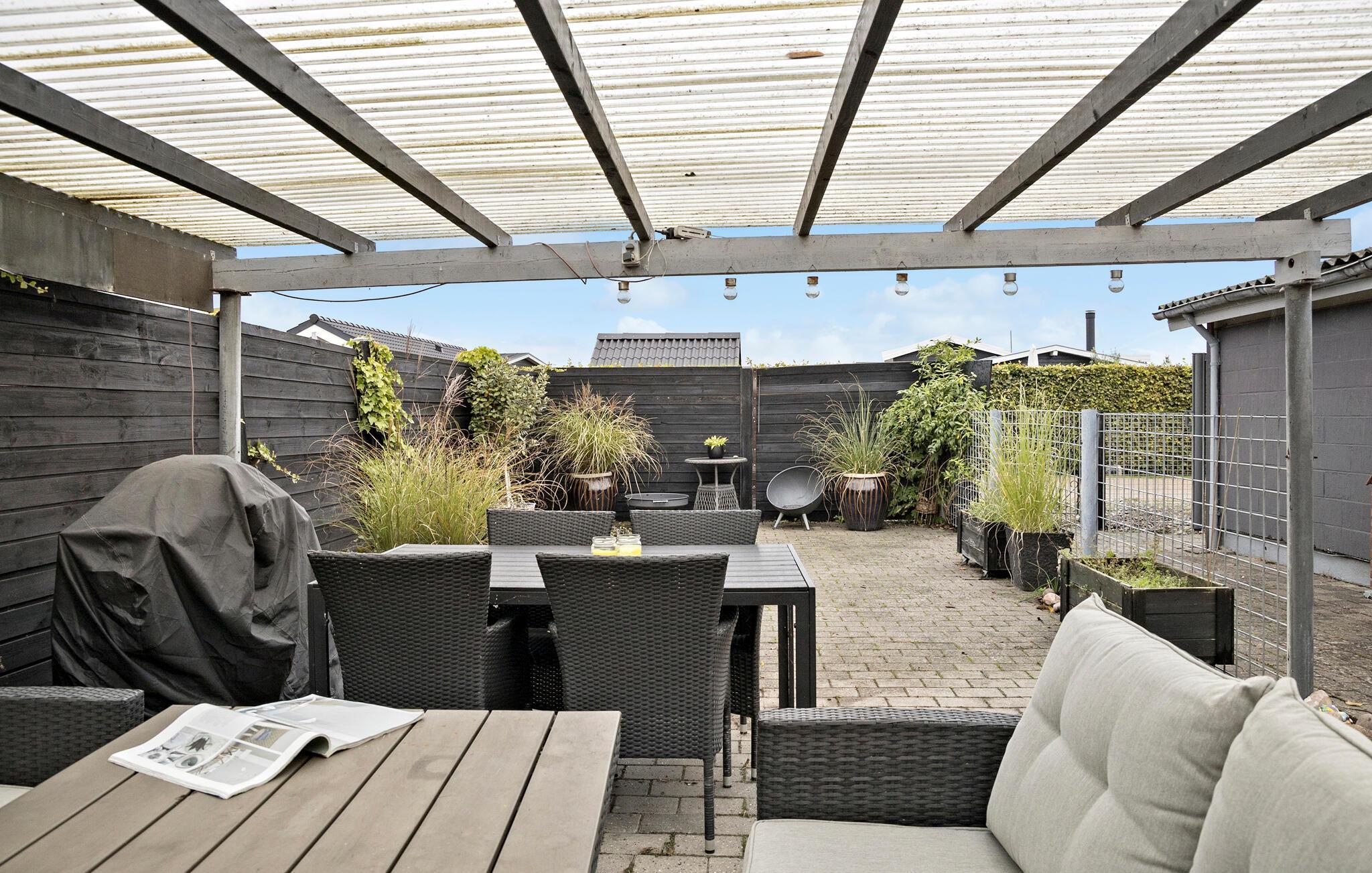 Hyggeligt feriehus tæt på Hasmark Strand med moderne faciliteter og privat have.