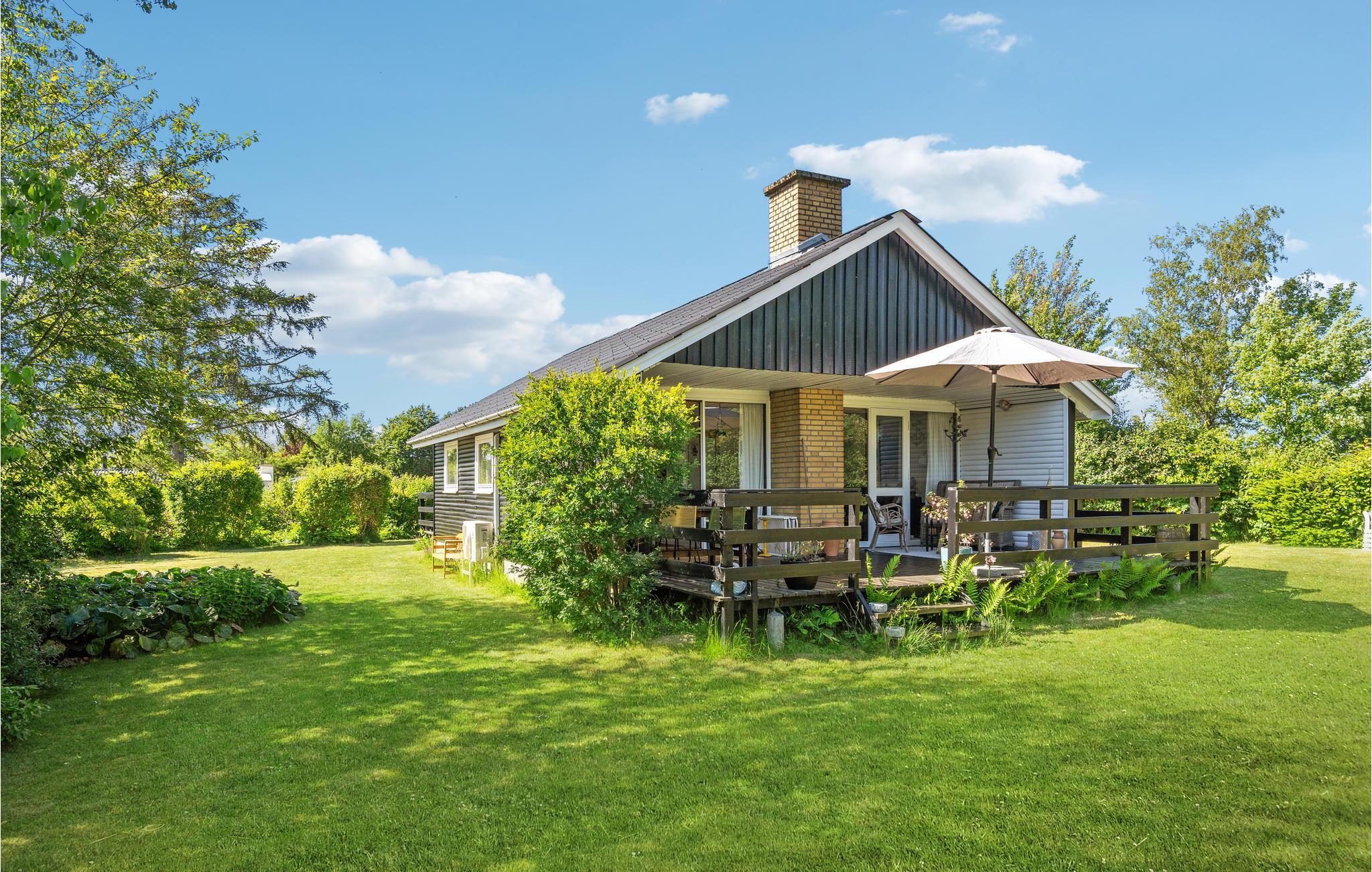 Familievenligt feriehus med en idyllisk beliggenhed og skøn have tæt på sandstranden.