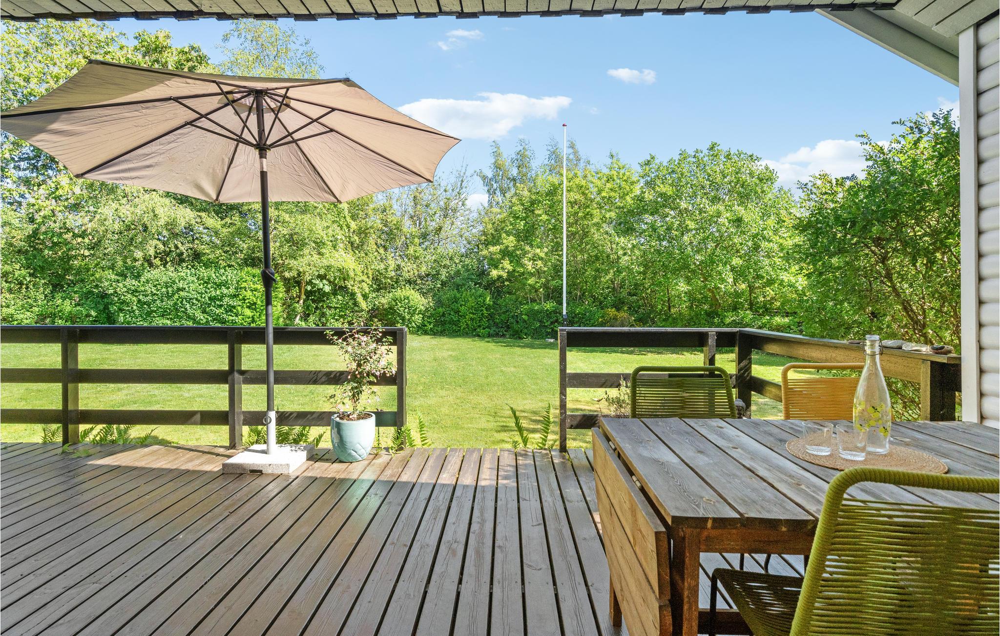 Kun 200 meter fra smukke Hasmark Strand ligger dette feriehus! Indenfor venter lyse værelser med mange søde detaljer og en stemningsfuld atmosfære, som danner den perfekte ramme om jeres familieferie. Tilbring hyggelige timer over lækre måltider og hyggelige brætspil og varm jer foran brændeovnen i den kølige sæson. Nyd også tiden i det smukke udendørsområde med flere terrasser og hyggekroge. Leg skovtur, lad de små boltre sig på græsplænen og sæt badmintonkampen i gang. Den nærliggende sandstrand er det perfekte sted til afslappende timer ved vandet.