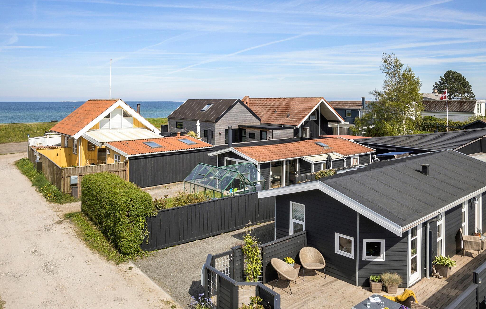 Hyggeligt træhus ved Hasmark Strand med solterrasse og udekøkken, kun 100 m fra stranden.
