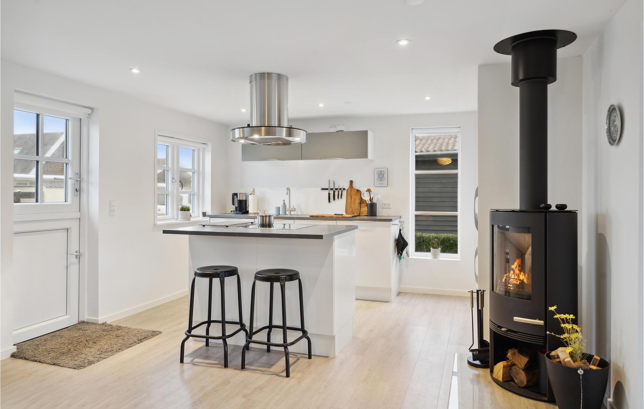 Velkommen til skønne Hasmark Strand og dette fine, lyse sommerhus, som giver jer nem adgang til stranden. Glæd jer til at tilbringe dagens hyggestunder i huset, efter I er tilbage fra jeres udflugter. Boligen har en dejlig ro med sit åbne, behagelige udtryk, så her er det nemt at slappe af. Giv jer i kast med en lækker aftenmenu i køkkenet, inden I kan læne jer tilbage i sofahjørnet og nyde varmen fra ilden i brændeovnen.