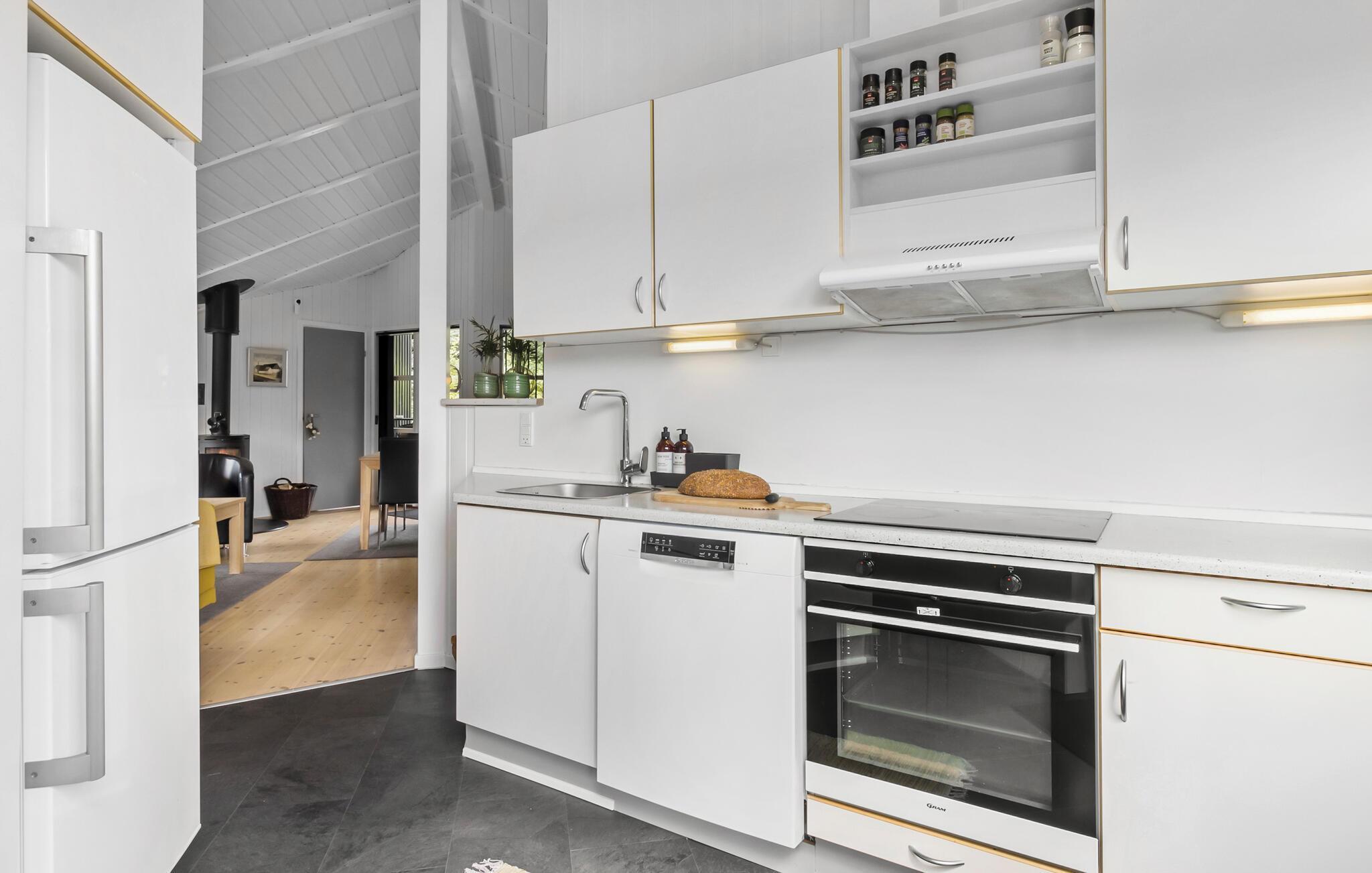 Velkommen til skønne Hasmark Strand og dette hus, hvor I kan nyde nogle gode feriedage. Her kan I både se frem til den korte afstand til havet og en dejlig fred og ro i de grønne omgivelser. Huset ligger ud til en stor åben grund og en træterrasse, hvor I kan tilbringe solskinsdagene. Begynd de lune dage med morgenmad udendørs og fyld lungerne med den friske luft. Snup et spil bold med familien og tænd senere op i grillen, når I skal gøre klar til den store sommermiddag. Børnene kan kaste sig over gyngerne og sandkassen, mens I måske nyder en pause med en god bog eller podcast i ørerne.
