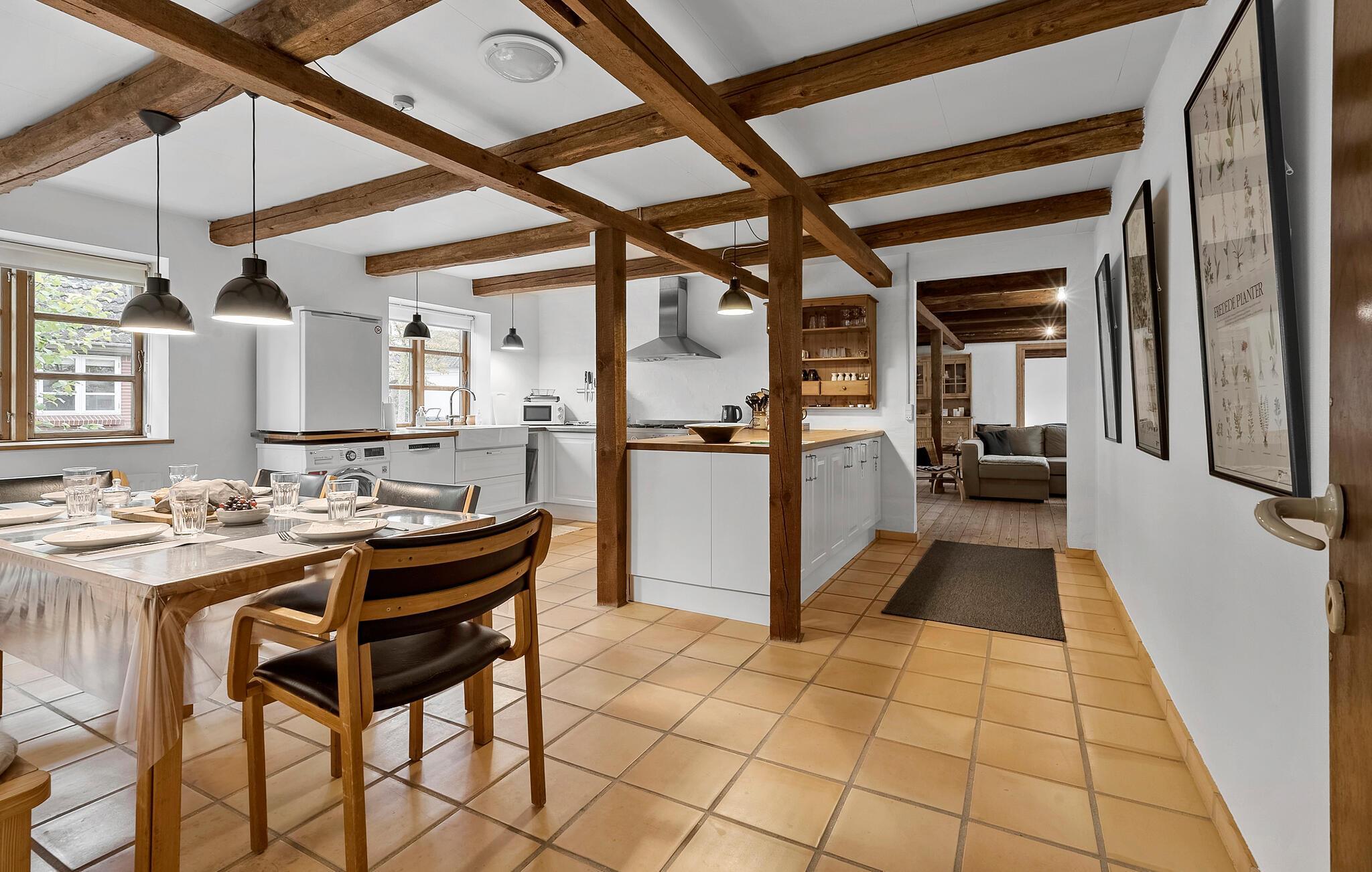 Glæd jer til en rolig ferie i denne hyggelige lejlighed, som ligger i landlig idyl og samtidig tæt på stranden. Nyd den rustikke charme med synlige træbjælker, lyse vægge og god plads til samvær. Sæt jer godt til rette i den rummelige stue, læs en god bog, eller nyd aftenen foran brændeovnen. Det åbne køkken er moderne indrettet og har alt, hvad I behøver for et behageligt ophold. Spis jeres måltider ved det store spisebord, mens I nyder udsigten til naturen udenfor.