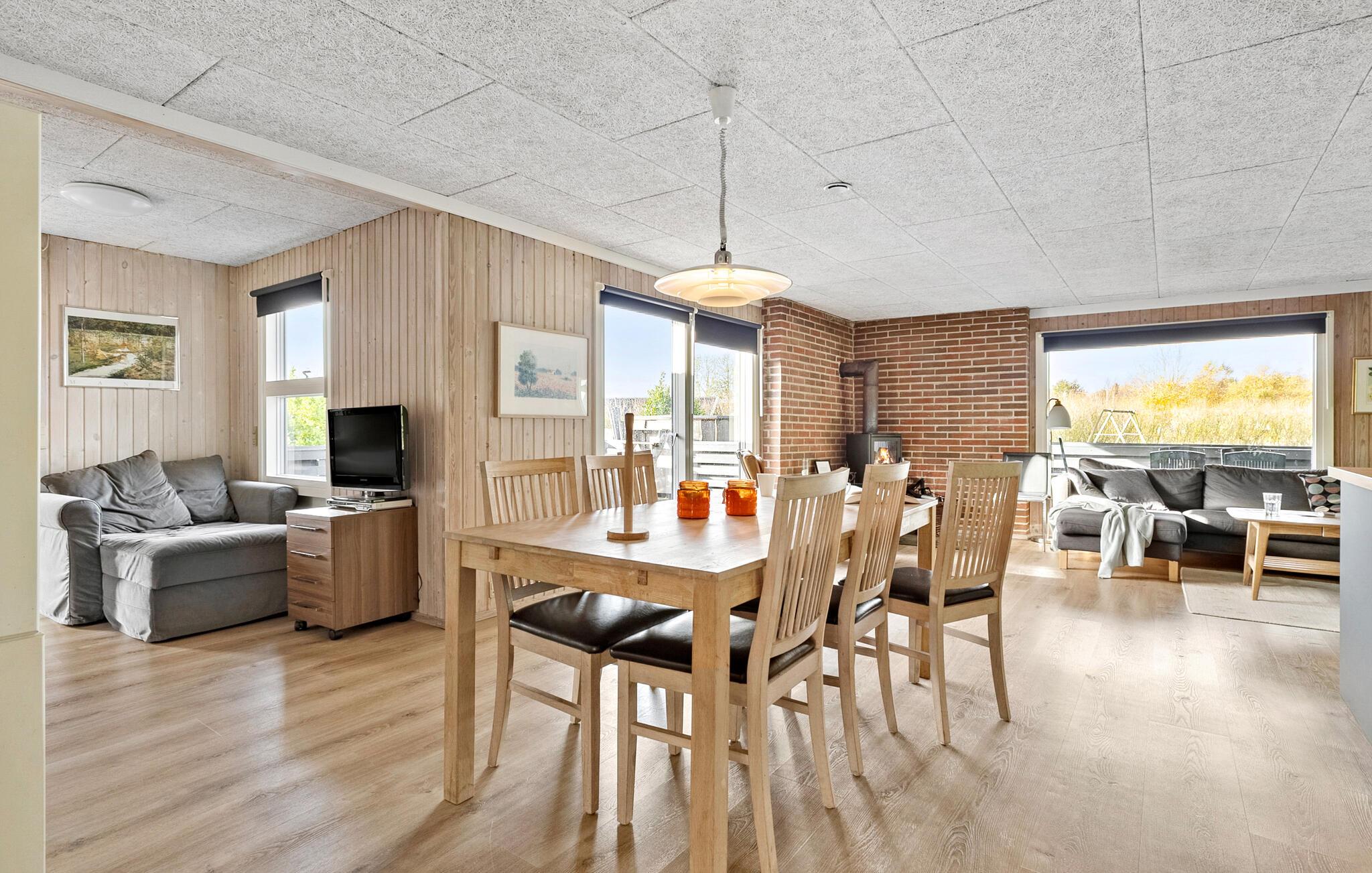 Huset byder jer velkommen med en lys og venlig atmosfære. Tilbring rolige timer på den behagelige sofa, og nyd udsigten til det grønne. Tilbered lækre måltider i det veludstyrede køkken, og server dem med et glas vin. På kølige dage sørger brændeovnen for behagelig varme, mens I hyggesnakker eller ser fjernsyn sammen.