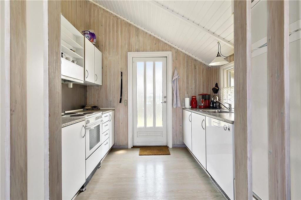 I den lyse, rummelige stue med sofa, spisebord og loft til kip, har du udsigt over havet i Nekselø Bugten og kan se både Nekselø og Sejerø samt følge lysets skiftende reflekser i det blå hav gennem dagen. Det kan være svært, at få øjnene fra udsigten i første række til havet, men i stuen kan du også samle familien om spisebordet til et brætspil, puslespil eller bingo.