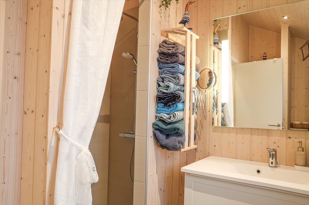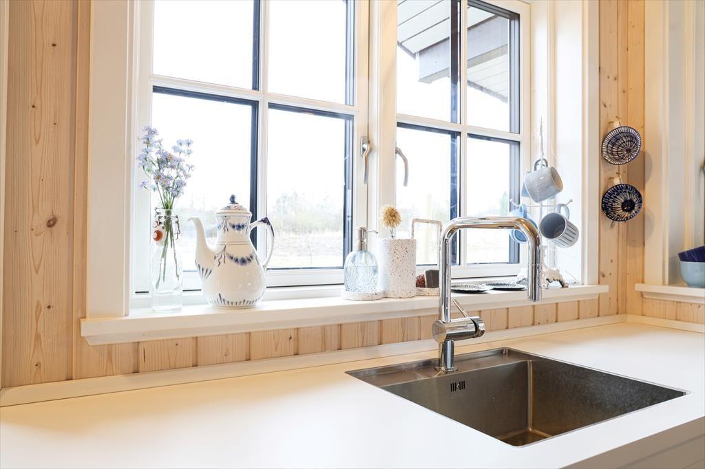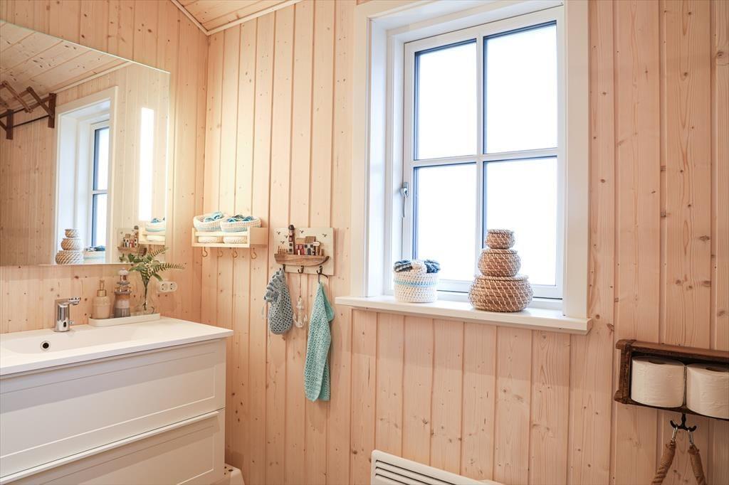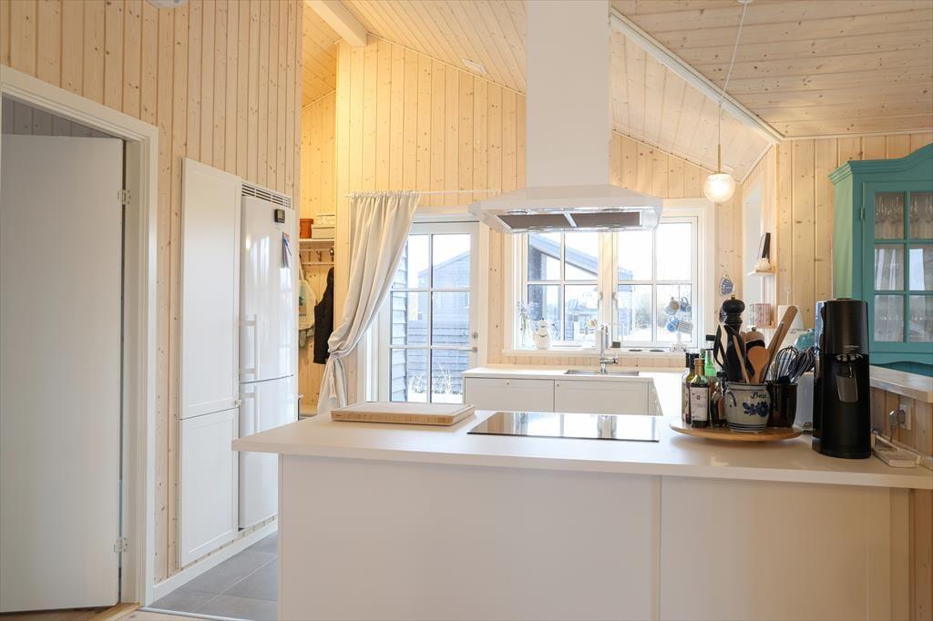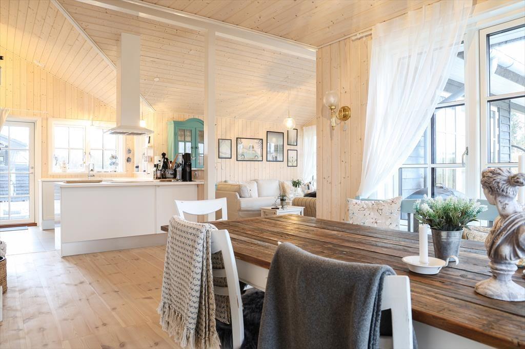 Sommerhuset fremstår lyst, lækkert og særdeles hyggeligt. Den fantastiske indretning, hvor der virkelig er kælet for de små fine detaljer, leder tanken hen på den smukke ”badehotel stil”. I det dejlige køkken med masser af udstyr er der plads nok til at samles om madlavningen. I den skønne stue er der plads til alle, når der skal hygges i sofaarrangementet om aftenen, eller de voksne kan nyde et godt glas vin og få en god snak efter børnene er puttet.