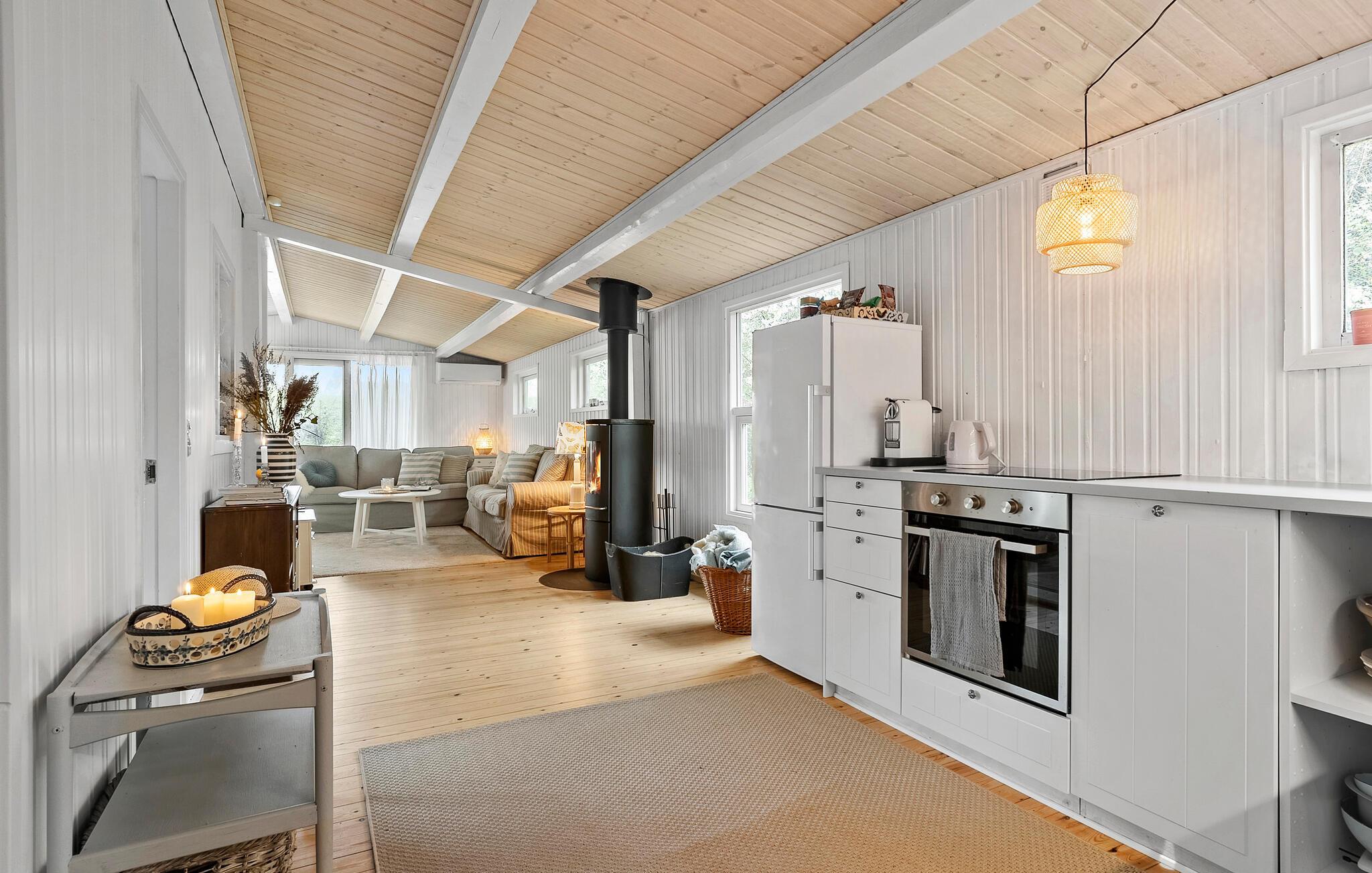 Velkommen til dette lyse og rummelige feriehus, hvor en harmonisk ferie med familien venter jer. Tænd brændeovnen og tryl lækre retter frem i det moderne køkken med friske råvarer fra gårdbutikken. Nyd den hyggelige atmosfære med hyggelige måltider ved spisebordet, og Slå jer ned godt til rette i den rummelige sofa til afslappende filmaftener.