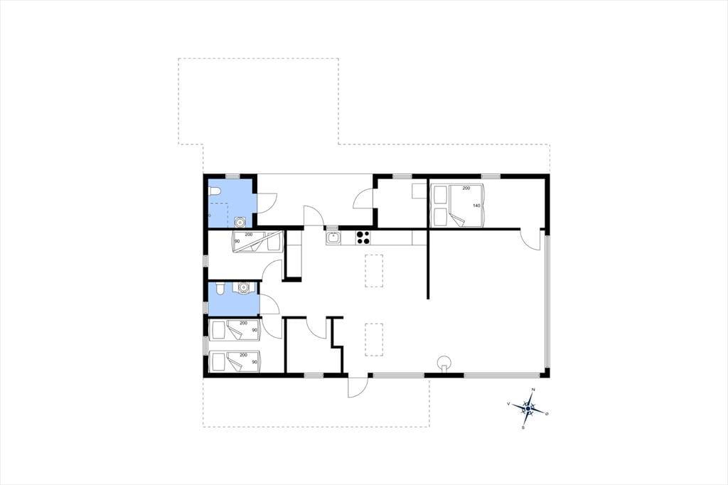 Sommerhusets opholdsafdeling er udstyret med store vinduer, så selv når I slapper af i sofaen eller står i køkkenet, kan I nyde nærheden til naturgrundens grønne frodighed. Opholdsafdelingen består af et stemningsfuldt køkken-alrum med brændeovn, og herfra er der direkte forbindelse til en opholdsstue med loft til kip og indfaldslys fra både øst og syd. De tre soveværelser ligger godt fordelt i huset, og der er også et gæstetoilet inden døre, og fra en overdækket terrasse har I adgang til et brusebadeværelse og et bryggers.