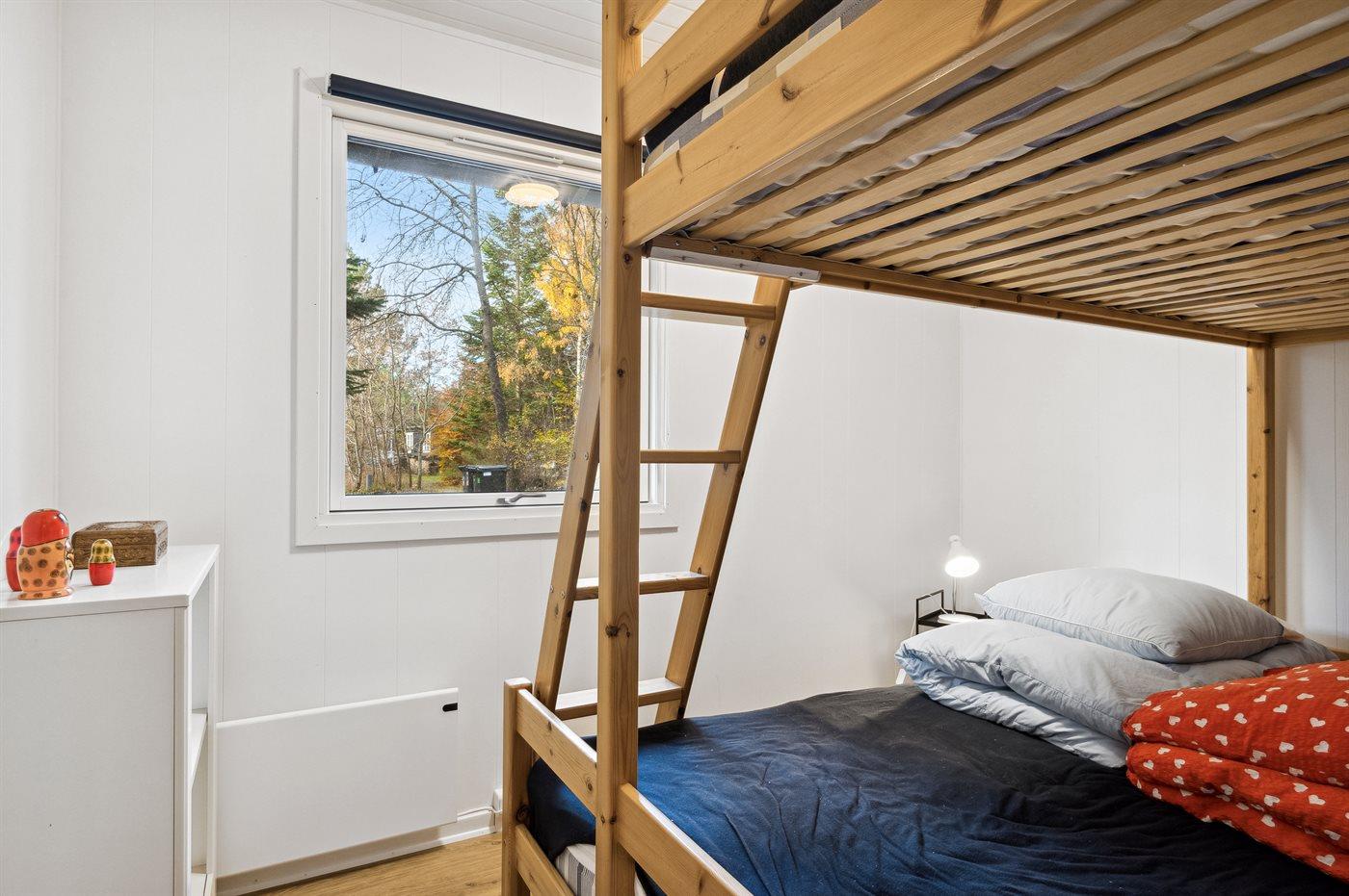 Der er i alt 3 soveværelser. Sovepladserne fordeler sig på: 2 sovepladser i dobbeltseng. 2 sovepladser i enkeltsenge. 2 sovepladser i køjeseng. Derudover er der 1 stk. barneseng.