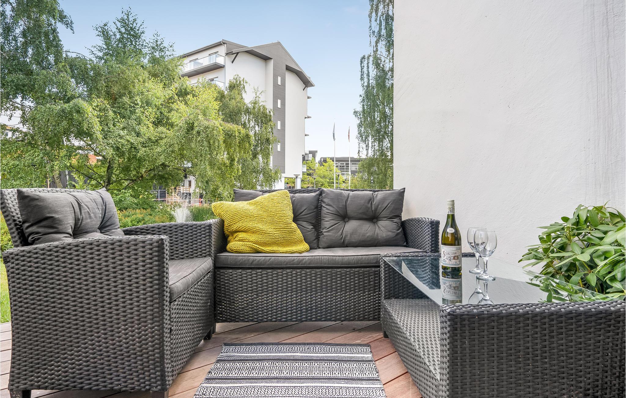 Når vejret er godt, bør I tilbringe jeres ferie udenfor på terassen og nyde solen med en kop kaffe.