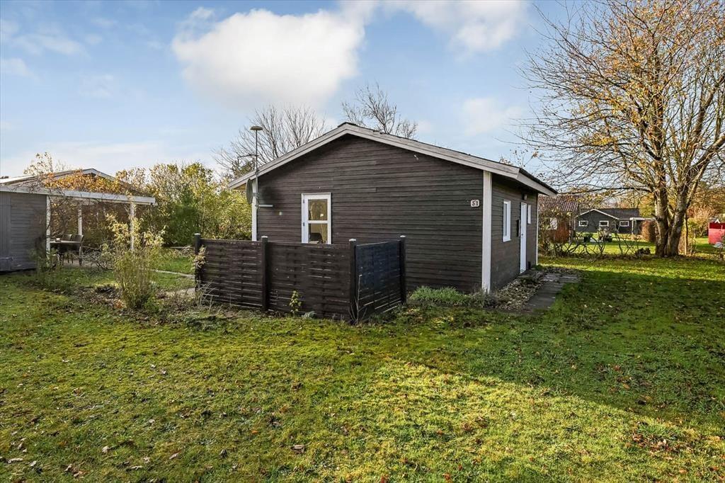 Hyggeligt sommerhus i Hemmet med plads til fire, kun 600 meter fra stranden på en stor grund.