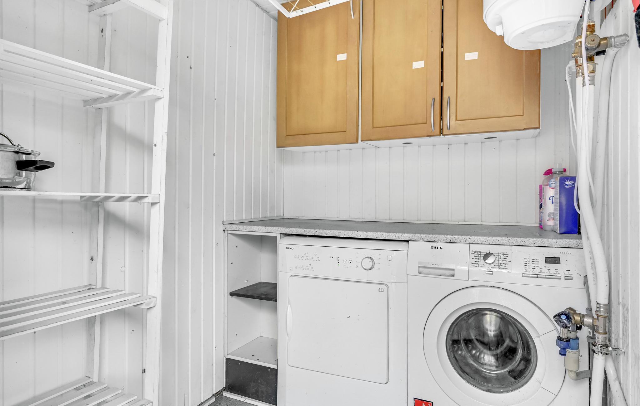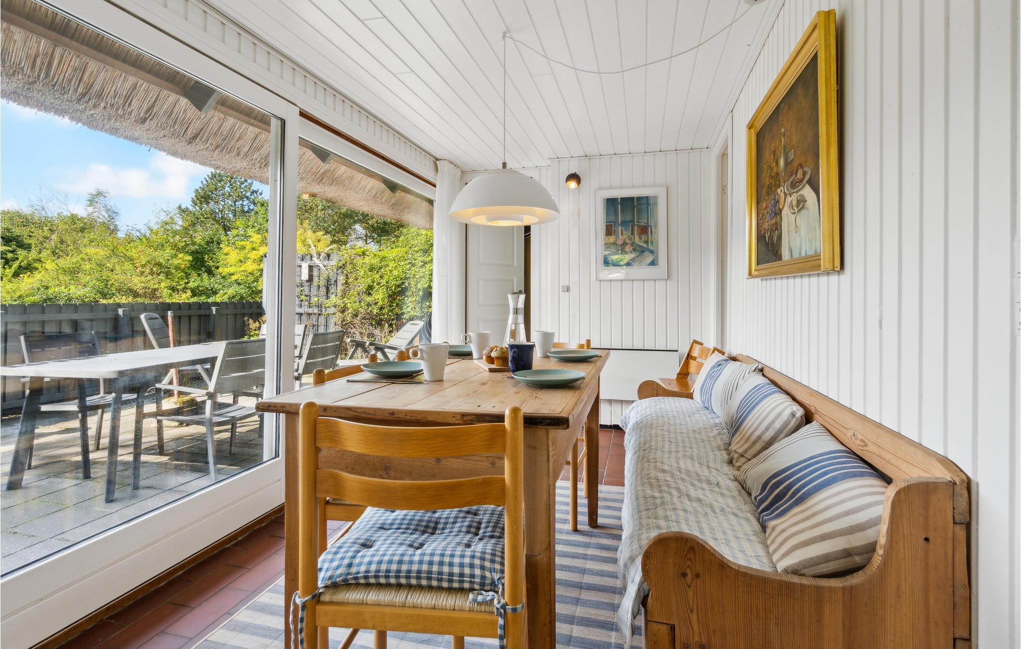 Se frem til ægte sommerhusstemning i dette hus, der byder på hyggelige, lyse rum og en lukket terrasse. Huset er ideelt, hvis I rejser med børn og har husdyr med, da der også er en stor have med plads til at boltre sig på. I den fint indrettede stue er der lagt op til gode stunder sammen, brætspilsaftener og timer foran brændovnens knitrende ild. Hele træhuset er beklædt med trælofter, -vægge og -gulve, hvilket forstærker dets naturlige og hyggelige atmosfære.