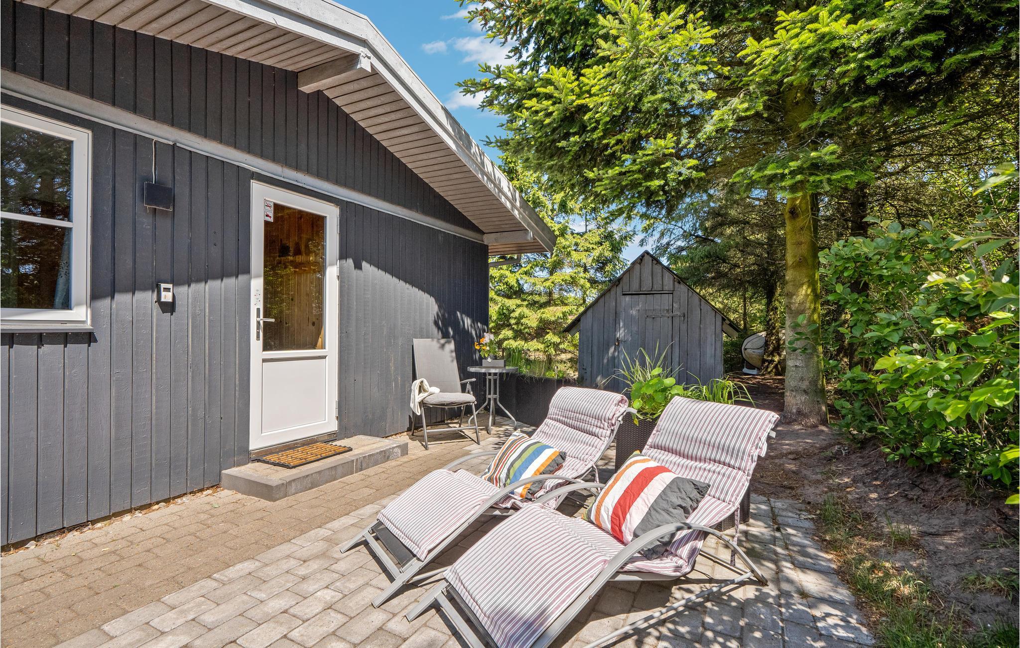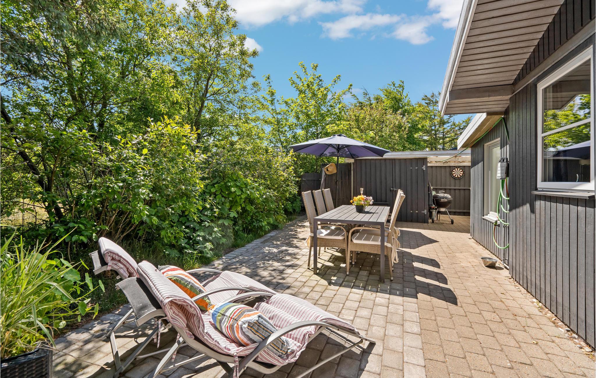 Hyggeligt sommerhus tæt på Hemmet Strand med adgang til svømmehaller og naturskønne omgivelser.