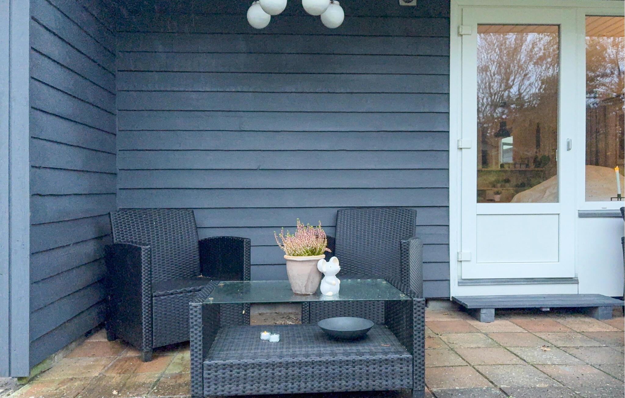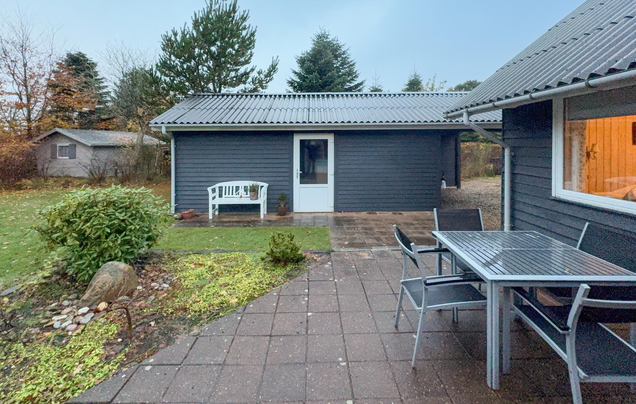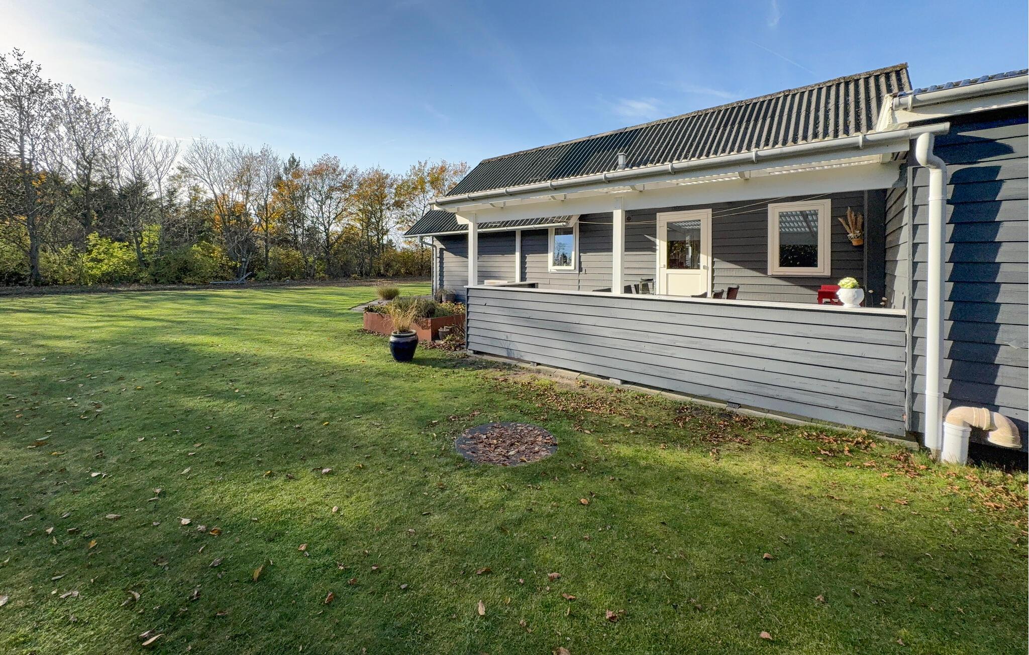 Hyggeligt feriehus i Hemmet med have, terrasse og tæt på fjorden for afslapning og naturoplevelser.