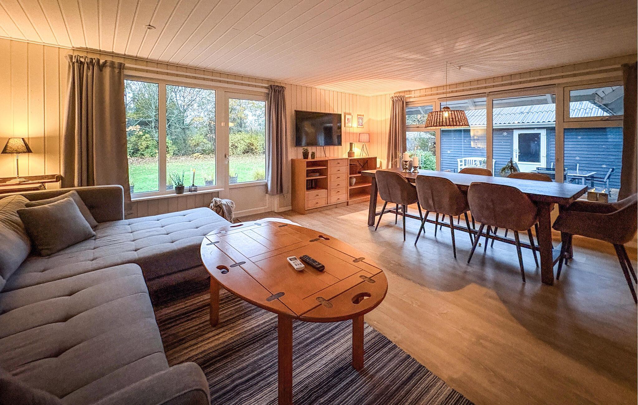 Dette hus er som skabt til en afslappende pause fra hverdagen. Varme trænuancer, store vinduer og en hyggelig sofagruppe skaber en atmosfære, hvor I hurtigt kan slappe af. Uanset om I streamer de nyeste serier, lytter til musik eller holder en sjov spilaften, bestemmer I selv tempoet for dagen her.