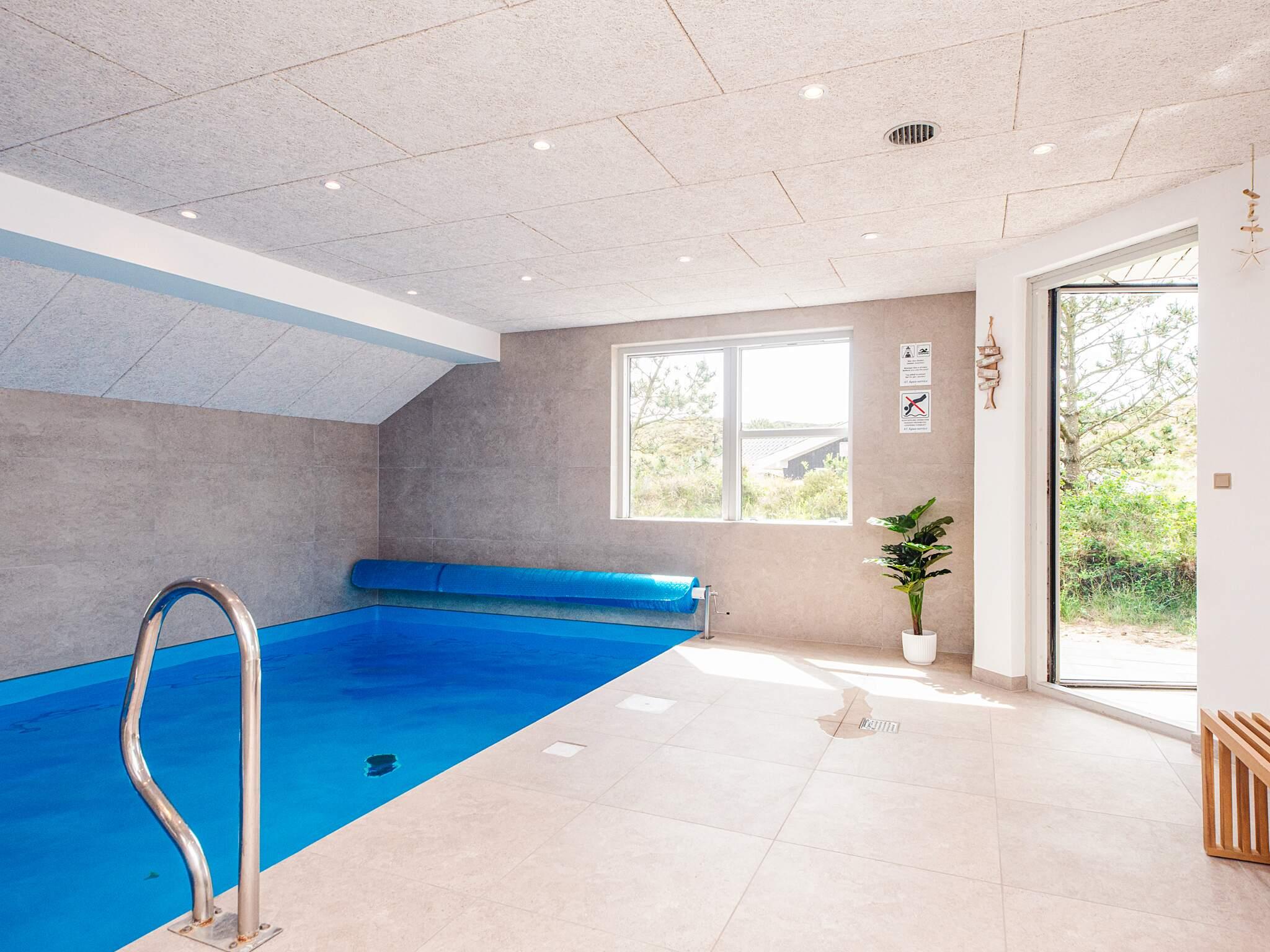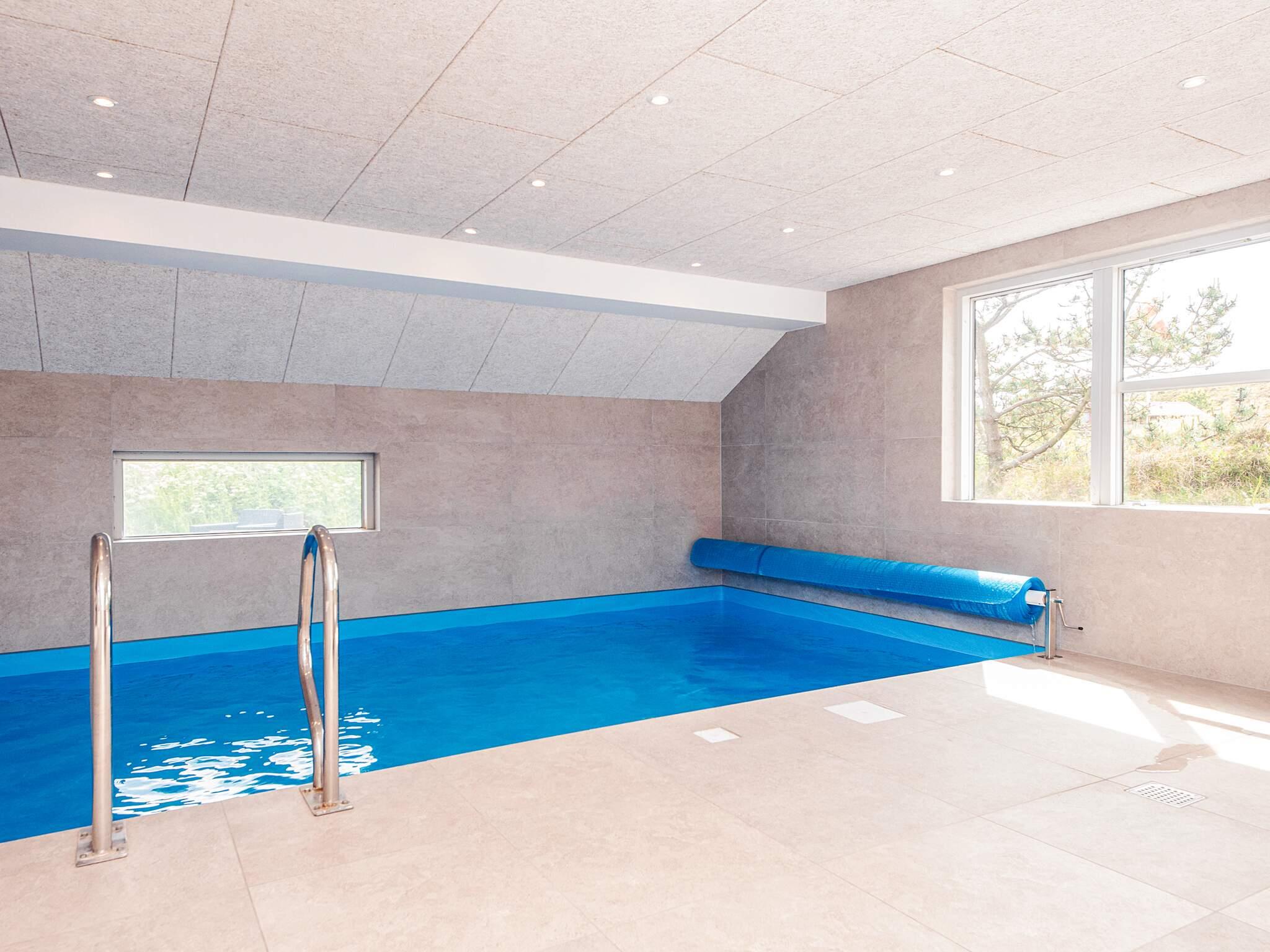 Poolstørrelse: 5,0 x 3,0 x 1,3 m. - Lækkert og velholdt sommerhus centralt beliggende i Henne Strand med kort afstand til strand, by og skov. Stuen er i åben forbindelse med spiseafdelingen og køkkenet. Stuen er domineret af det store vinduesparti mod syd, og i hele opholdsafdelingen kan du nyde brændeovnens skær og følge med i aktiviteterne i poolen og det store 4 pers. spabad.(Fra marts 2025, vil der være udendørs spa og ikke indendørsspa.) Fra stuen er der adgang til stor og delvis overdækket terrasse og fra poolafdelingen er der adgang til en mindre terrasse, hvor solen kan nydes om eftermiddagen og aftenen. Sommerhuset ligger afskærmet af volde og kuperet terræn, så du kan opholde dig udendørs ret så ugeneret. Gratis slutrengøring!