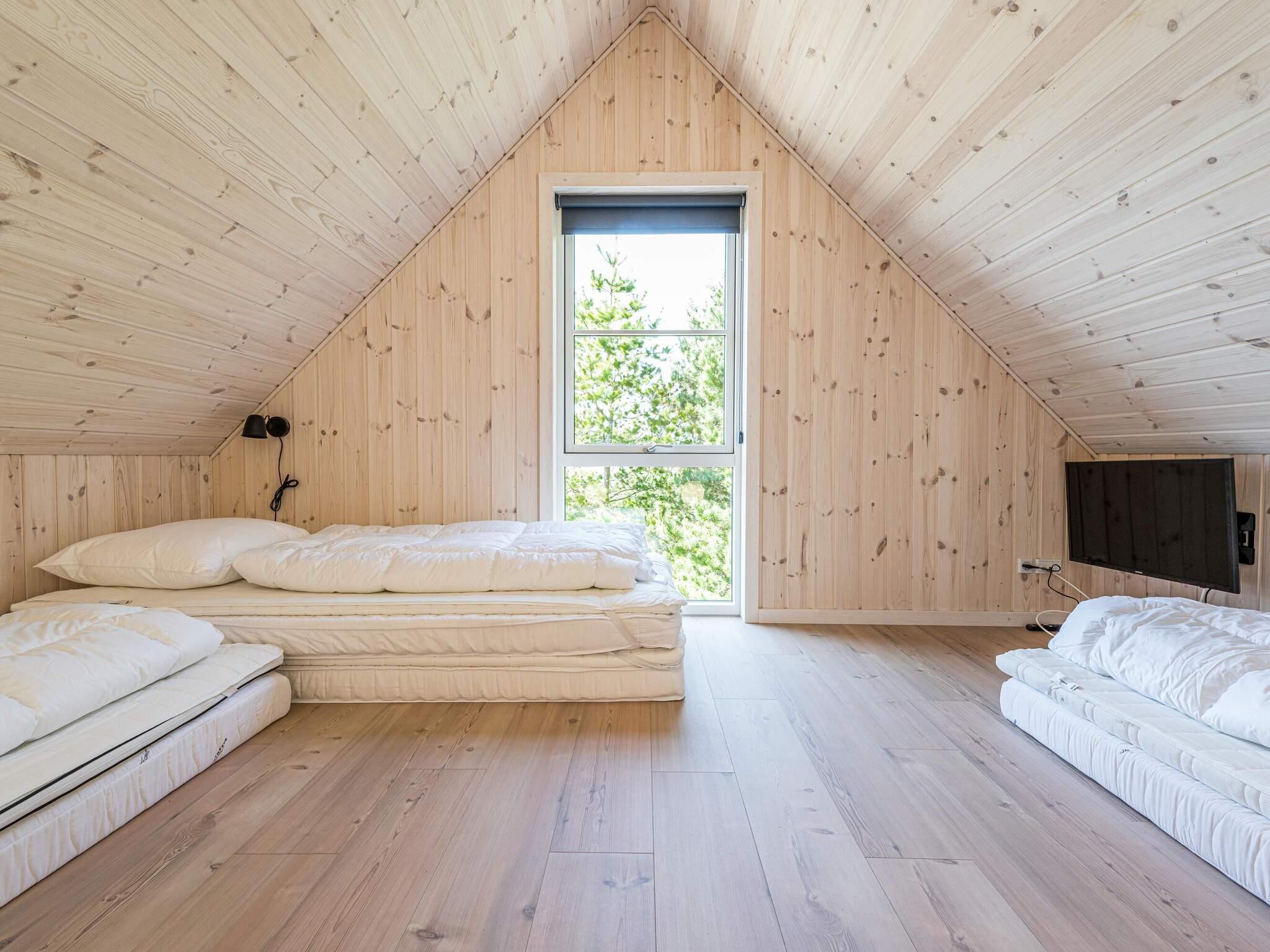 Huset er smukt indrettet og indeholder fire soveværelser: tre med dobbeltsenge og et med to enkeltsenge. Derudover giver en hems under taghældningen tre ekstra sovepladser og et tv, hvilket gør det til et perfekt tilflugtssted for større børn. Der er to badeværelser til rådighed, hvoraf det ene har et spabad og en sauna til beroligende wellness-øjeblikke.