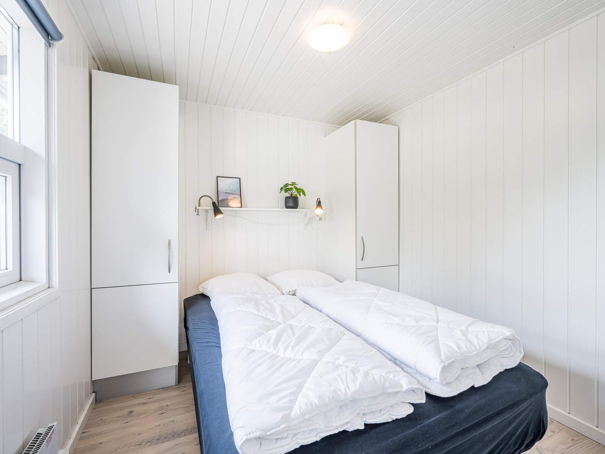 Feriehuset har tre komfortable soveværelser – to med dobbeltsenge og ét med to enkeltsenge – så der er god plads til op til seks personer. Det moderne køkken er fuldt udstyret med elkomfur, ovn, køleskab, lille fryser, kaffemaskine og opvaskemaskine, så det er let at tilberede måltider. Der er to badeværelser: ét med bruser, håndvask og toilet samt ét med vaskemaskine, tørretumbler, håndvask og toilet – ideelt til længere ophold.