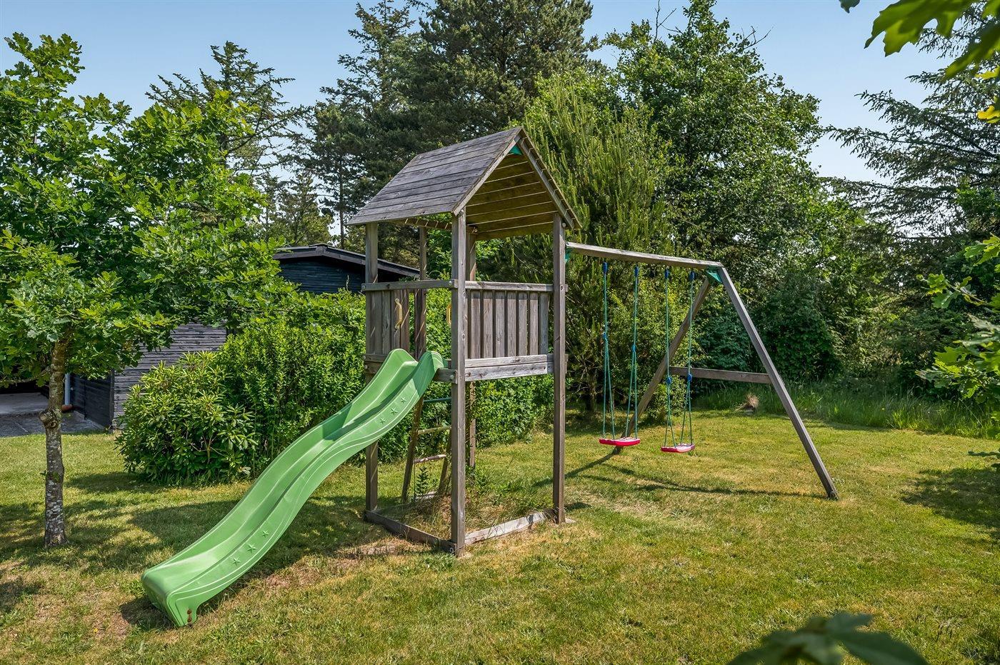 Ferieboligen er beliggende på en 1500 m² stor naturgrund. Der er 2500 m til havet. Nærmeste forretning er beliggende i en afstand af 2000 m. Der er en golfbane i en afstand af 1500 m. Der er installeret stik til opladning af elbil. Type 2 stik. Parkering ved ferieboligen.