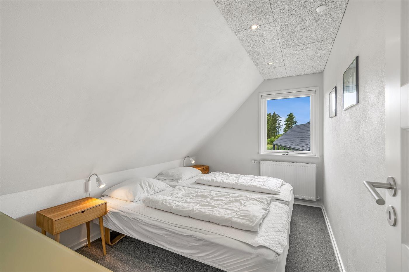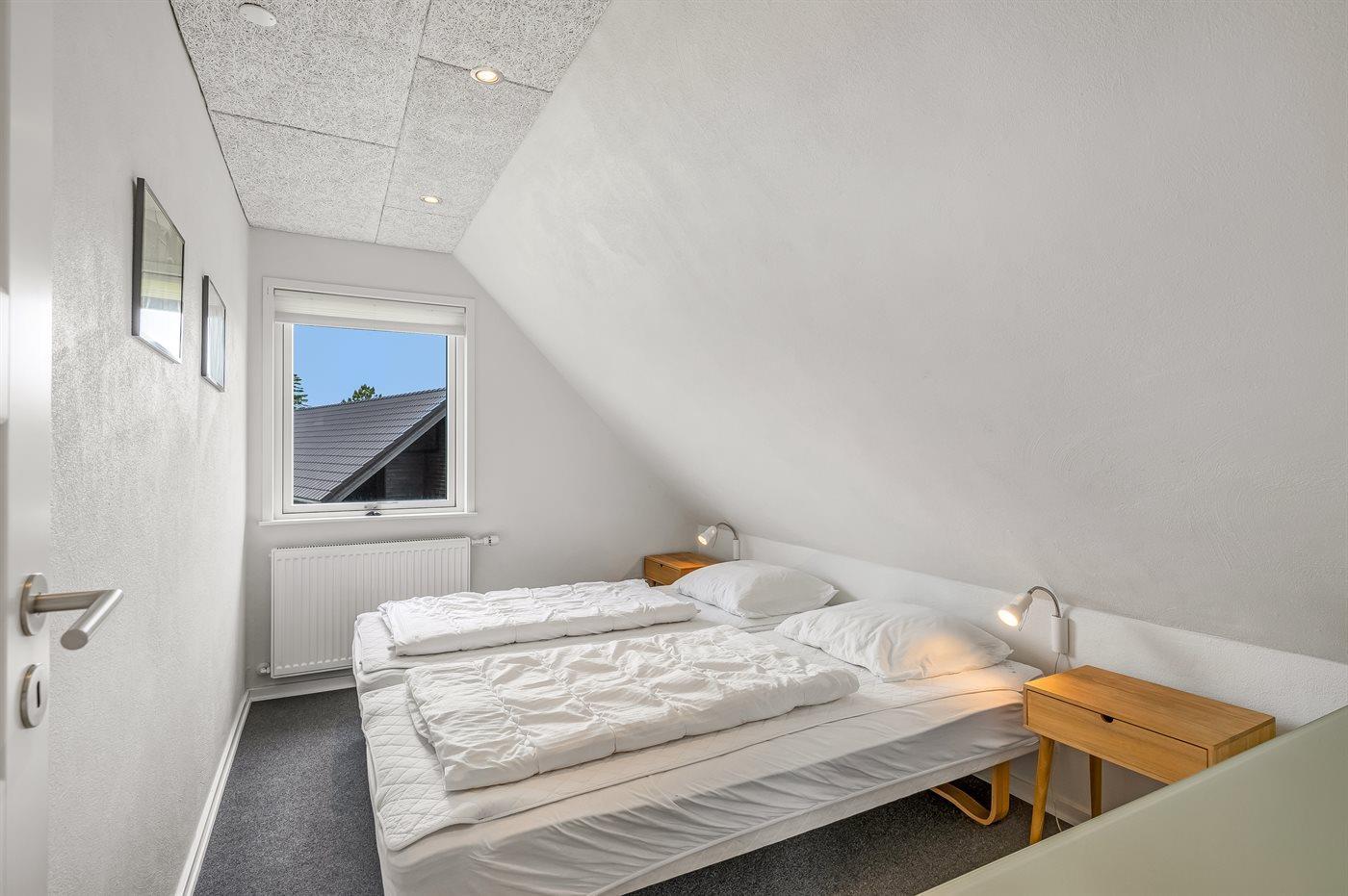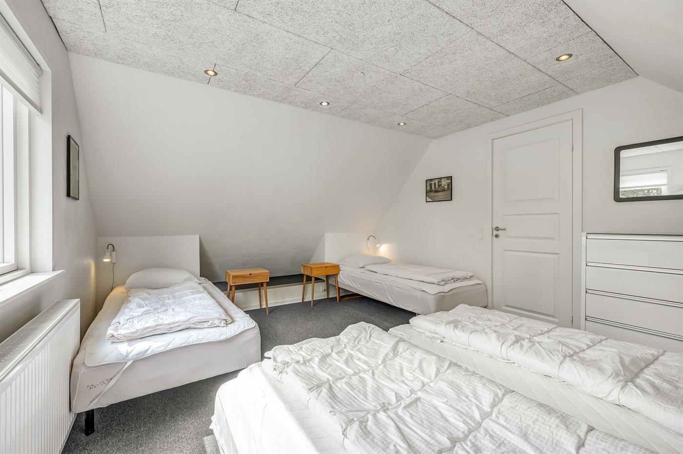 Der er i alt 5 soveværelser. Sovepladserne fordeler sig på: 8 sovepladser i dobbeltsenge. 4 sovepladser i enkeltsenge. Derudover er der 1 stk. barneseng.