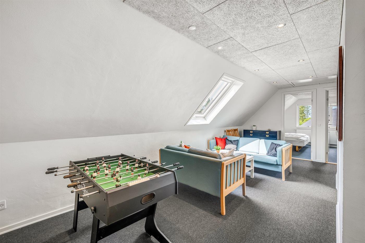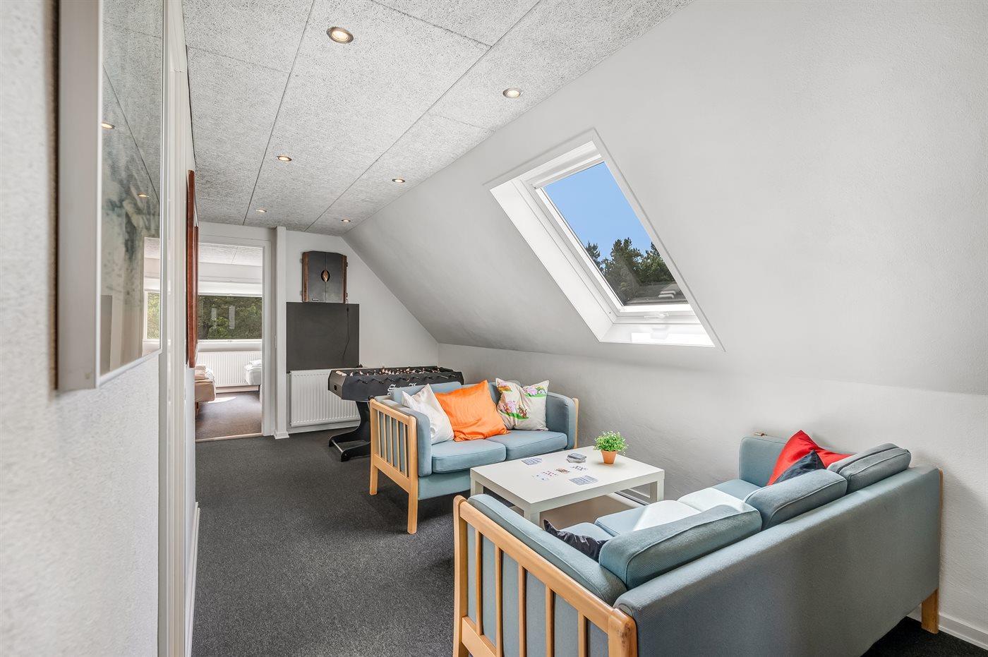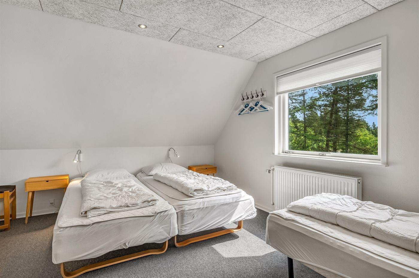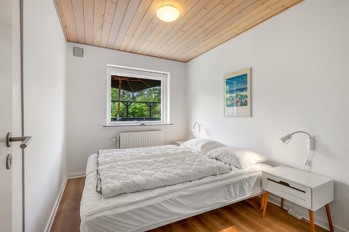 Der er i alt 5 soveværelser. Sovepladserne fordeler sig på: 8 sovepladser i dobbeltsenge. 4 sovepladser i enkeltsenge. Derudover er der 1 stk. barneseng.