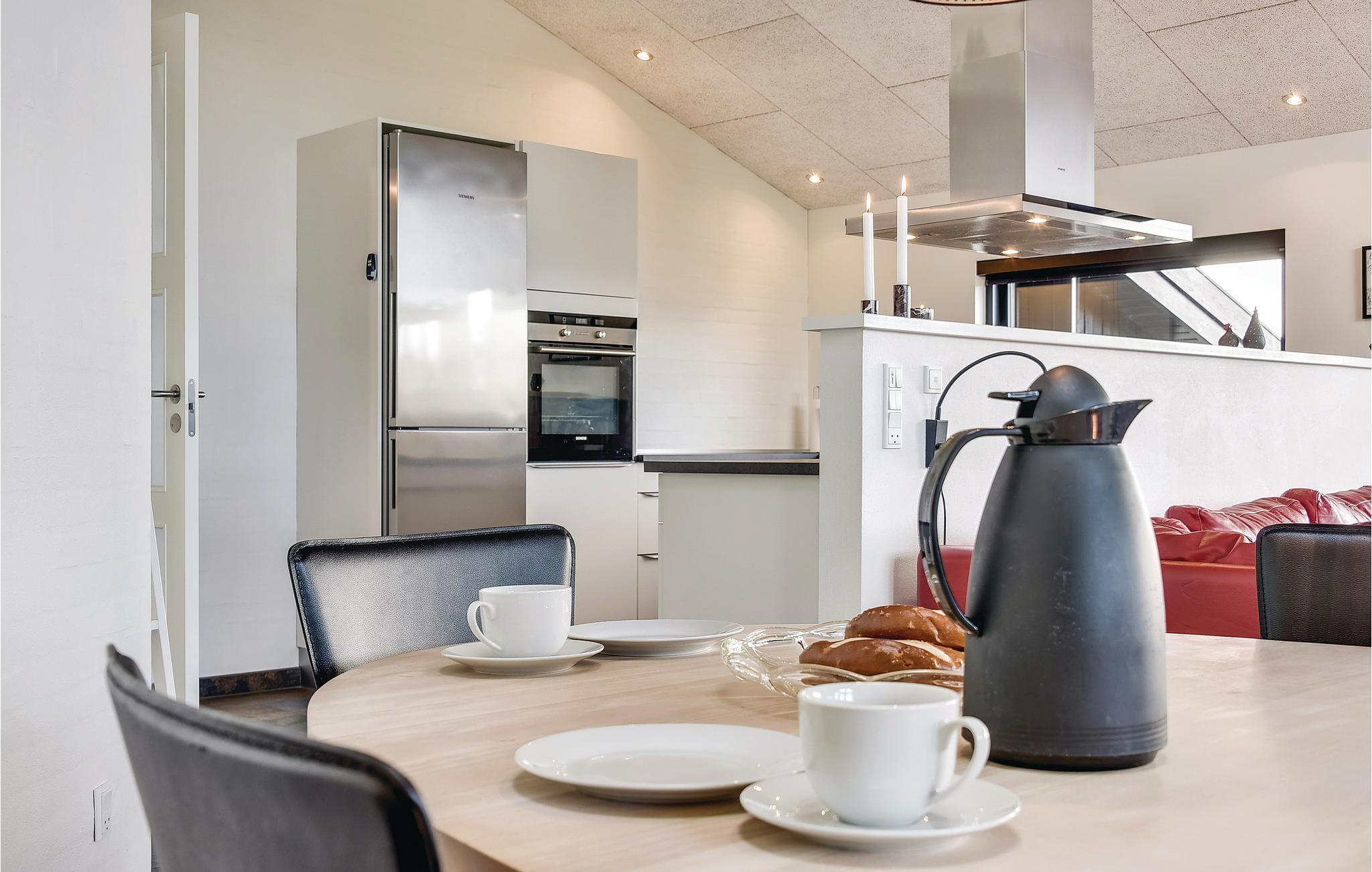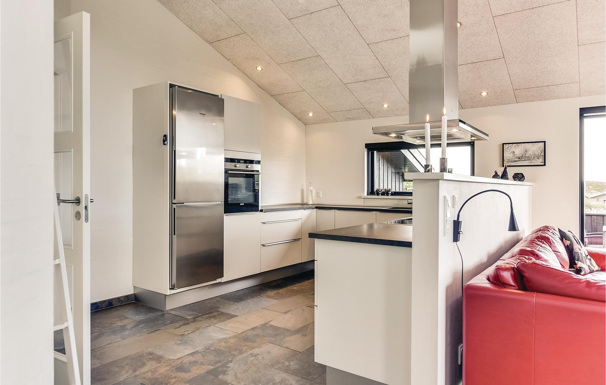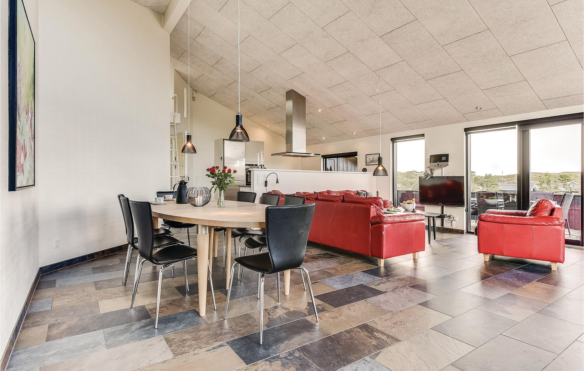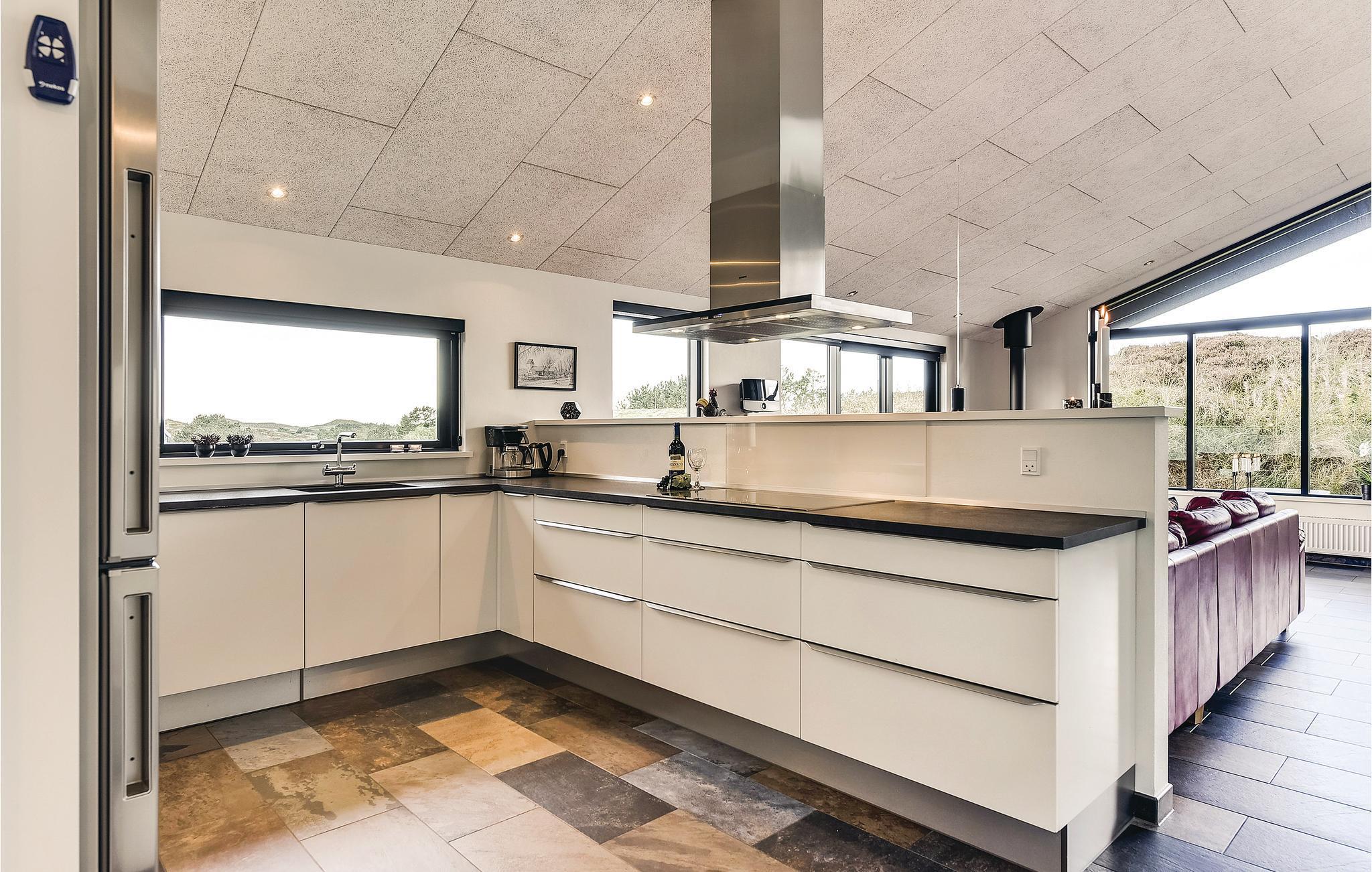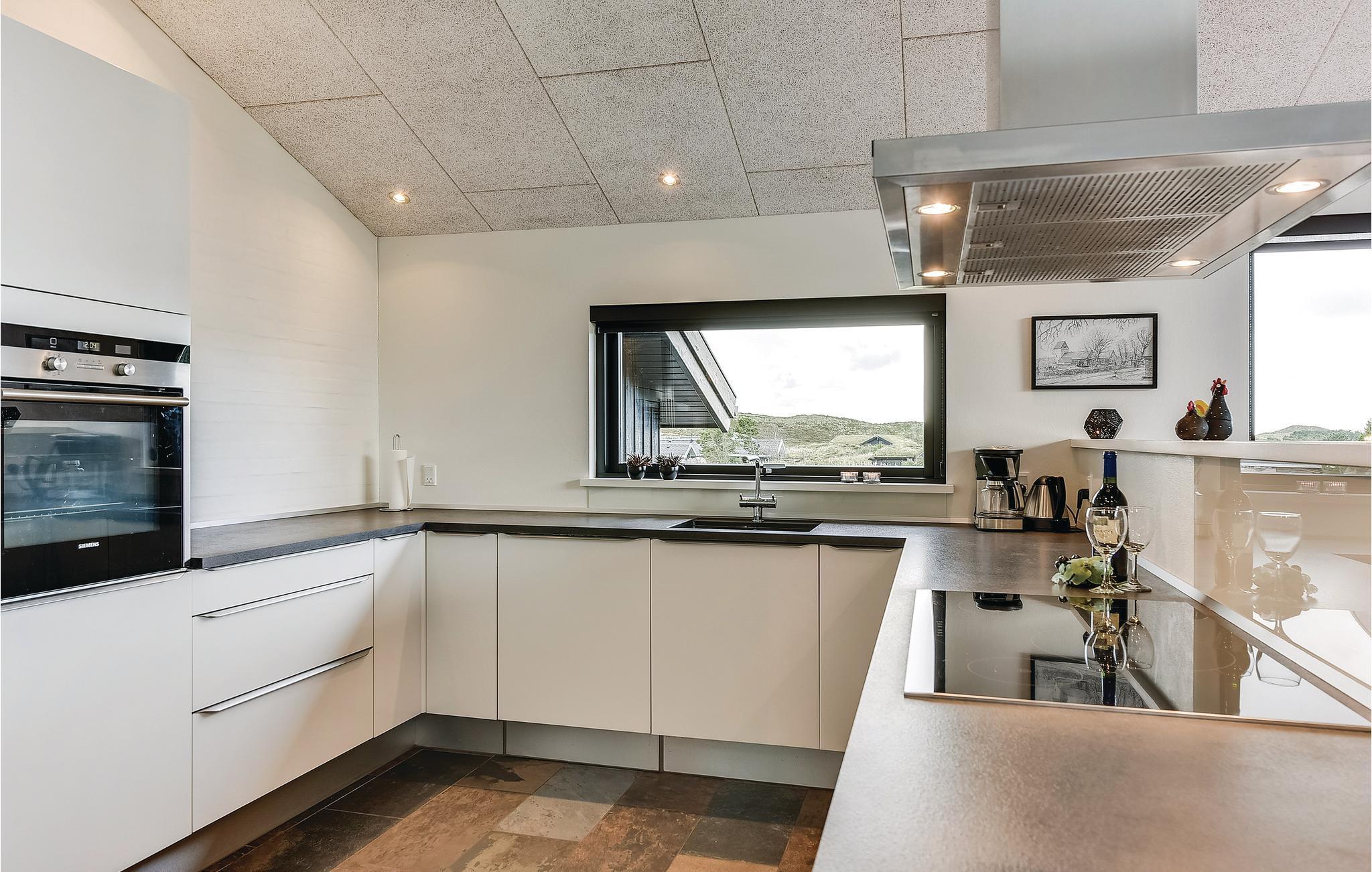 Super flot og meget indbydende kvalitets sommerhus med alt hvad der kræves for et god og minderig ferie. Sommerhuset ligger på skøn, helt ugeneret og klitgrund med læ i gå-cykelafstand af Henne Mølle Å, Henne Golfklub, Henne Strand by samt vestkystens bedste og hvideste badestrand. Fra huset er der panoramaudsigt over det flotte område. Huset indeholder stort og yderst veludstyret køkken i åben forbindelse med stuen der er dejligt indrettet med bl.a. brændeovn og tv. Herfra går I ud på de delvist overdækkede terrasser, hvor I kan slappe af i de bekvemme solsenge og gode havemøbler. I huset er der også tre gode soveværelser med dobbeltsenge og TV. I sommerhuset er der klinkegulve med gulvarme i en del af huset, der kommer fra et yderst energivenligt jordvarmeanlæg, samt trægulve i soverummene. Der er to flotte badeværelser også med gulvvarme og fra det store badeværelser med spa, er der direkte indgang til skøn sauna. Flere gode og ugenerte terrasser omkring huset og hvor der altid kan findes læ og et legehjørne med stor sandkasse.