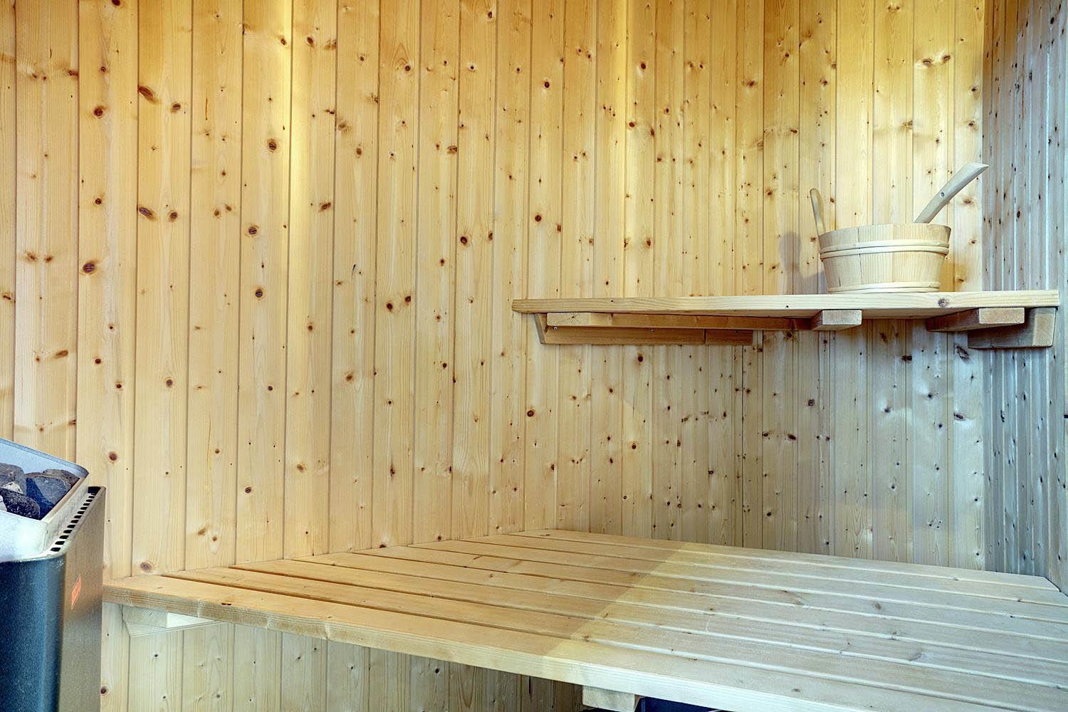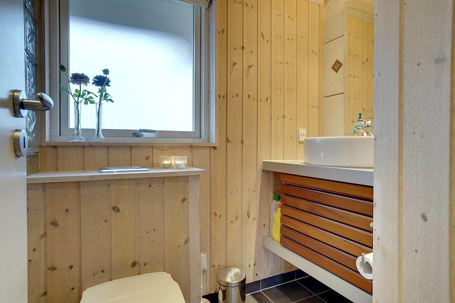Huset har to flotte badeværelser, begge med bruser og gulvvarme. Det ene badeværelse har en ekstra detalje – en spa og en stor sauna, hvor du kan forkæle dig selv efter en dag med oplevelser.