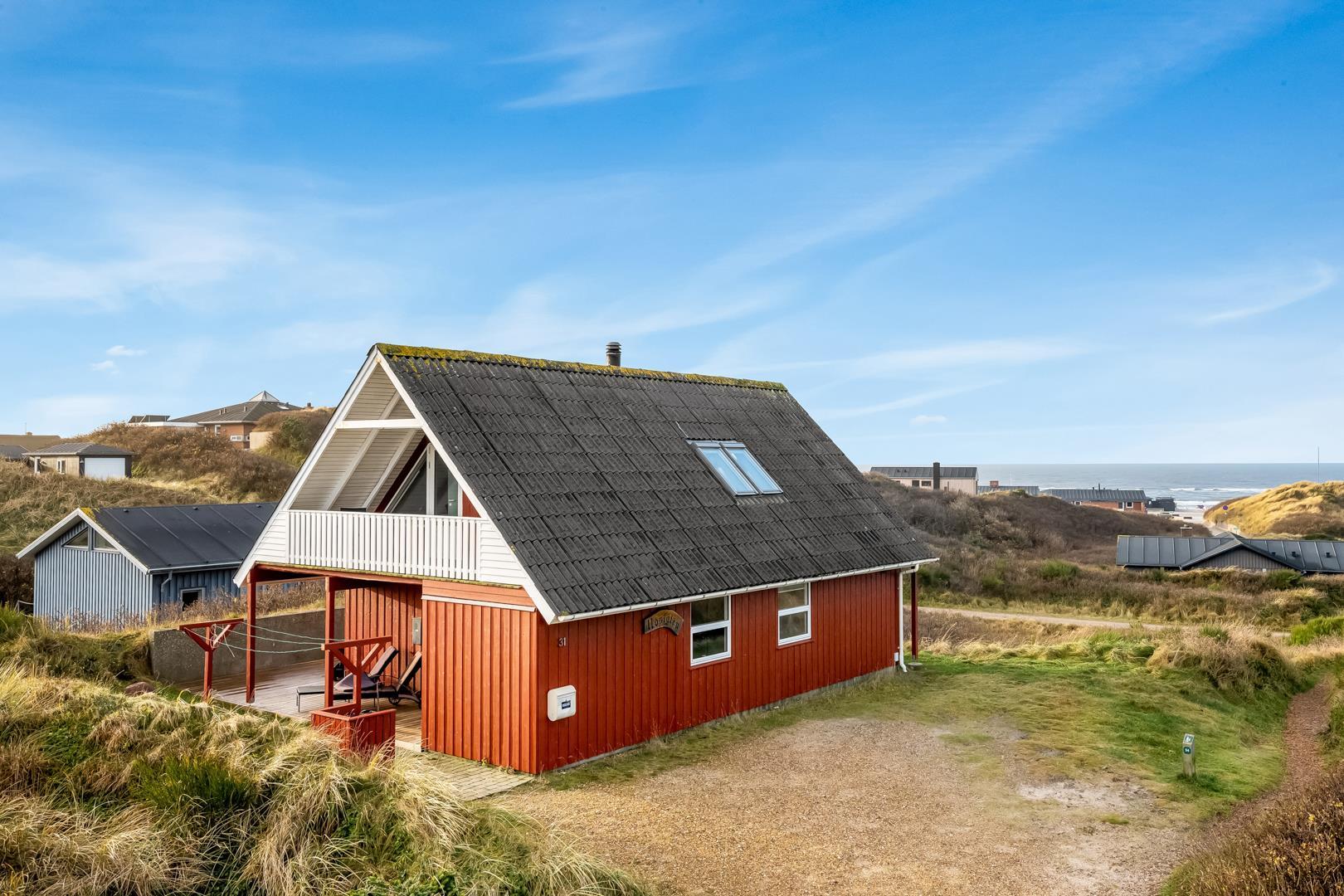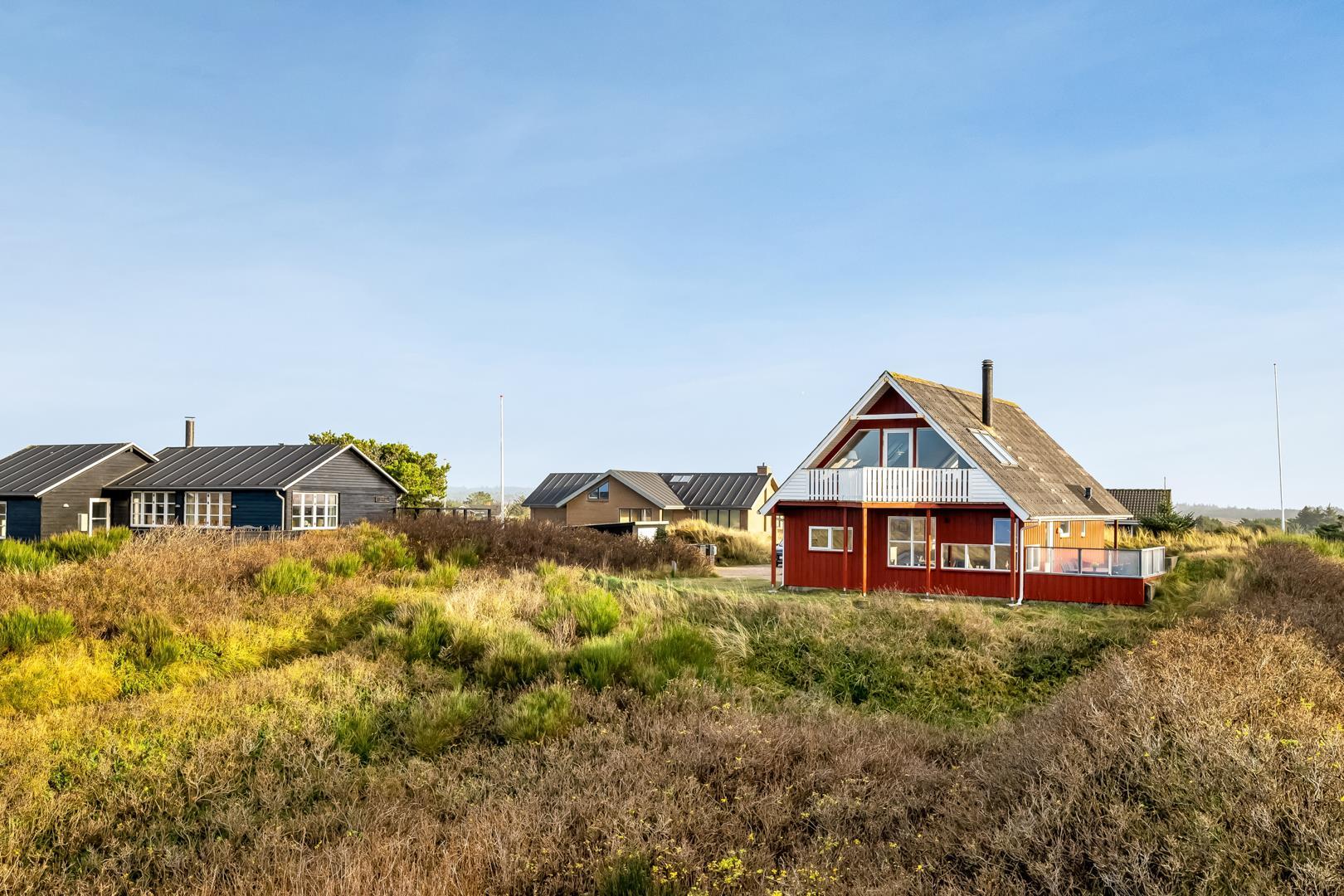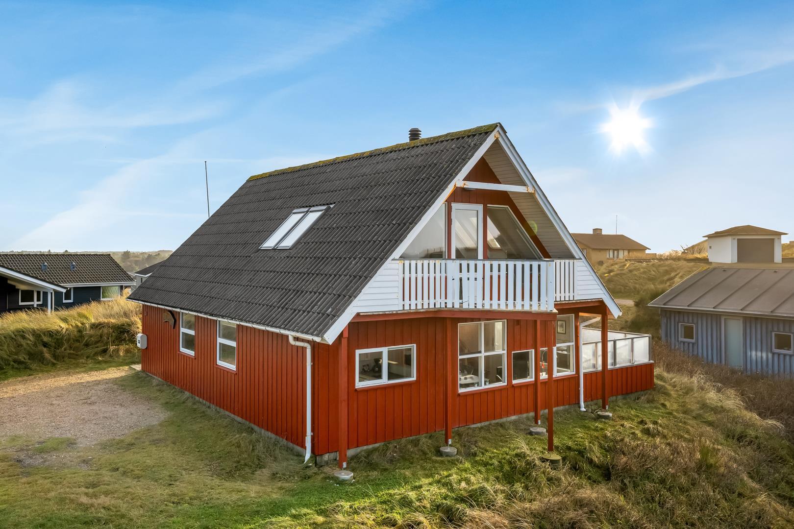 Skønt feriehus i 2 etager med havudsigt beliggende på en pragtfuld klitgrund tæt på stranden. Der er både havudsigt fra stueetagen og 1 salen. Flere dejlige terrasser hvorfra den flotte udsigt kan nydes. Pænt badeværelse med sauna. På 1 salen finder man den hyggelige stue hvor den flotte udsigt kan nydes og hvor der er udgang til balkon. Et lækkert hus tæt på vandet.