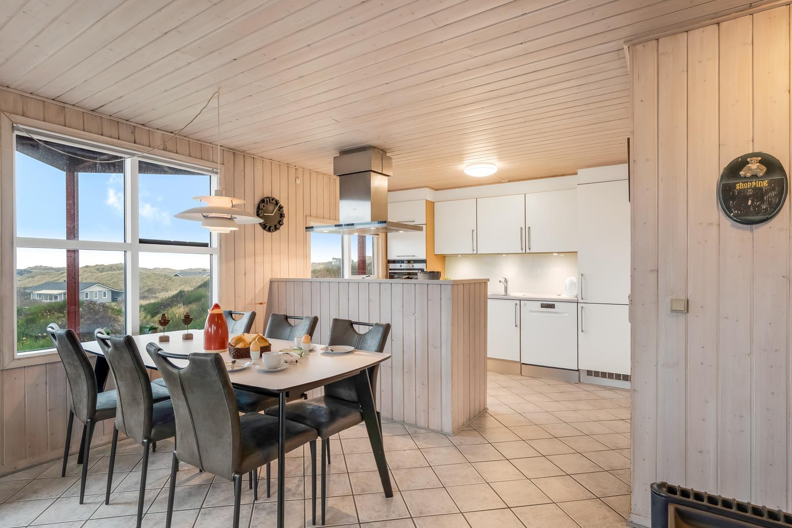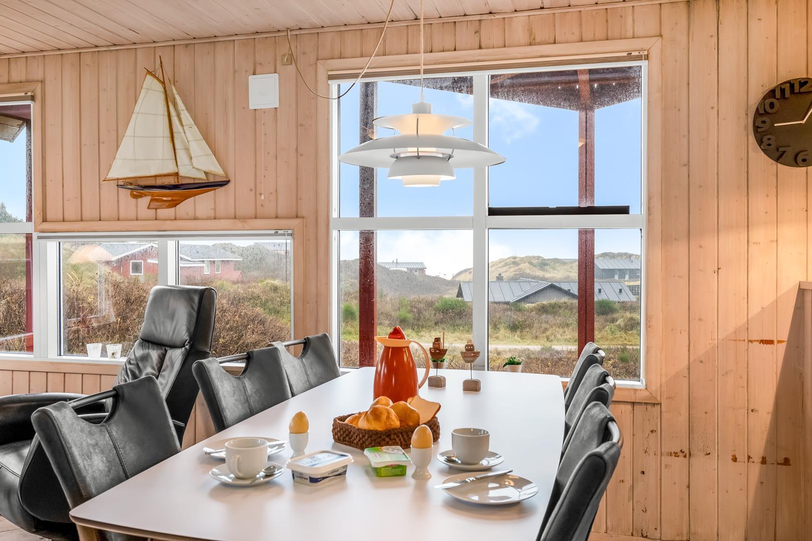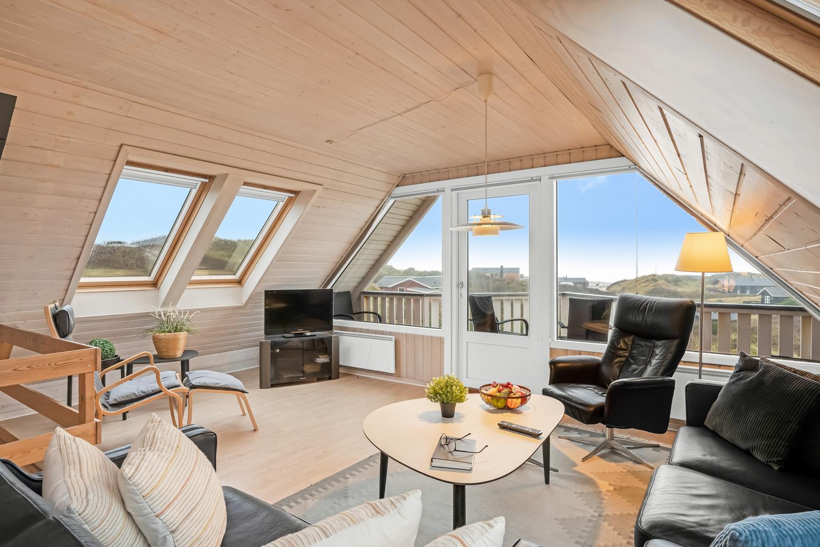 Skønt feriehus i 2 etager med havudsigt beliggende på en pragtfuld klitgrund tæt på stranden. Der er både havudsigt fra stueetagen og 1 salen. Flere dejlige terrasser hvorfra den flotte udsigt kan nydes. Pænt badeværelse med sauna. På 1 salen finder man den hyggelige stue hvor den flotte udsigt kan nydes og hvor der er udgang til balkon. Et lækkert hus tæt på vandet.
