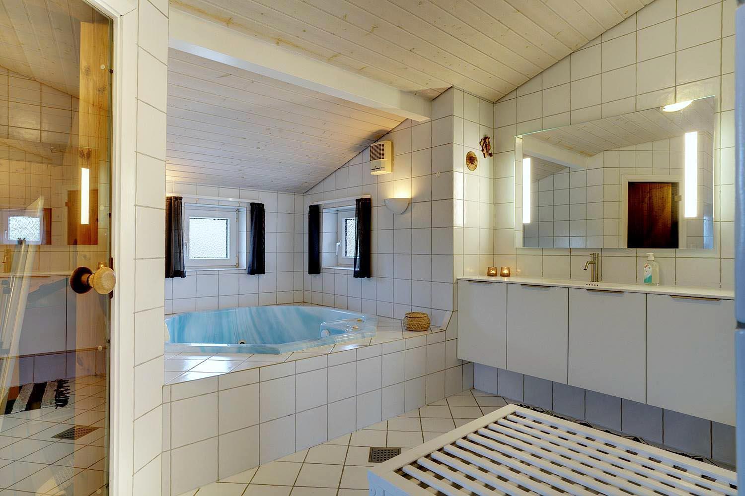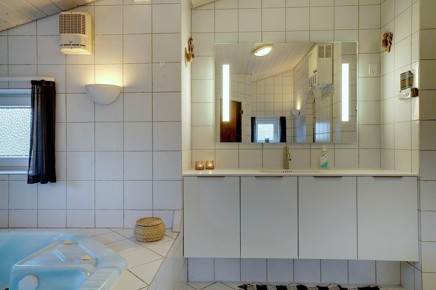 I gåafstand til Henne Strands hyggelige handelsliv finder I dette dejlige og velholdte feriehus med 2 flotte badeværelser som er blevet moderniseret. I det ene badeværelse er der 4 personers spa og sauna. Stor stue med brændeovn og komfortable møbler, bla. stor hjørnesofa. Der er også tænkt på det praktiske med vaskemaskine og tørretumbler.