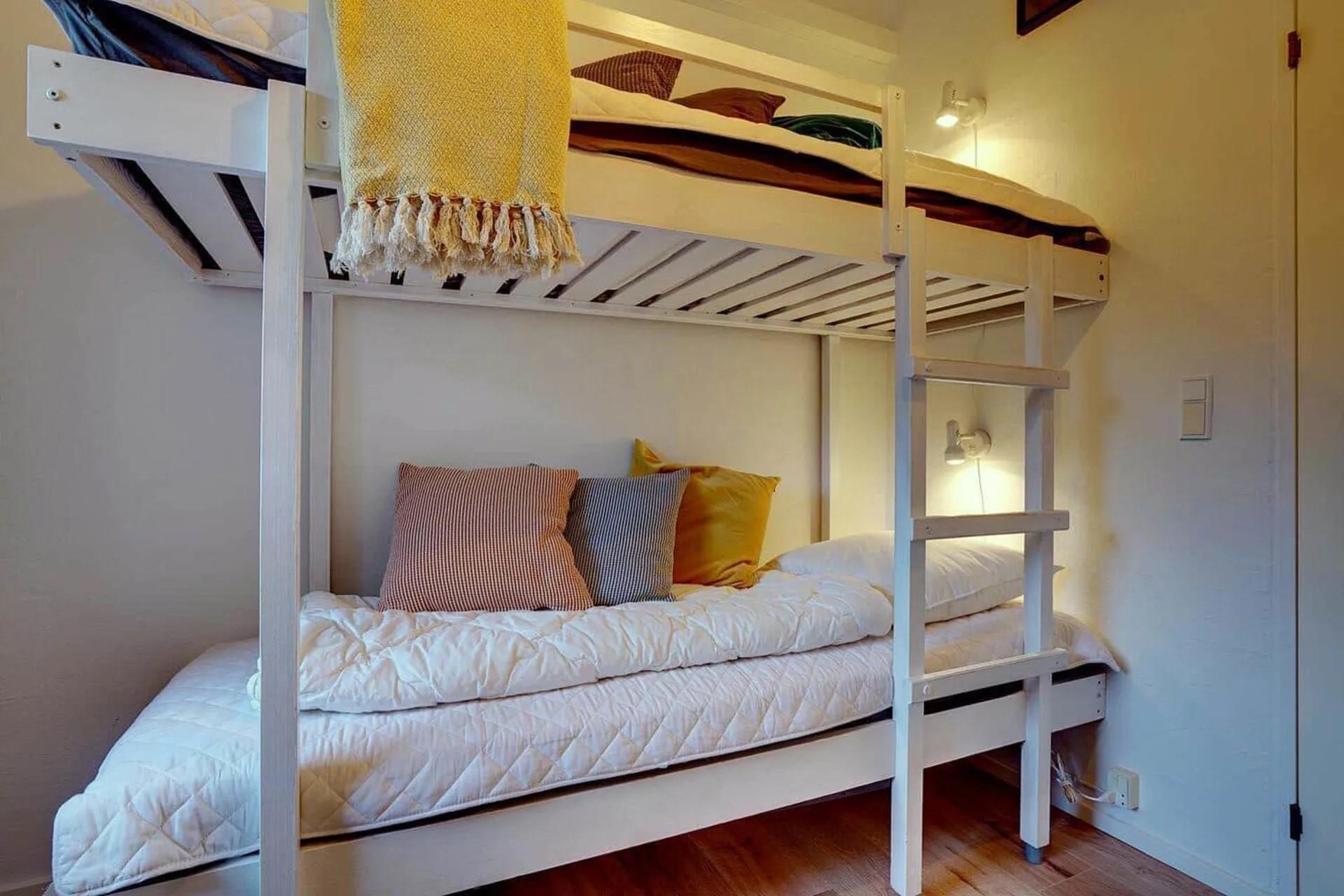 Sengestørrelse: 2 dobbeltsenge 160 x 200 cm + 2 enkeltsenge 90 x 200 cm.