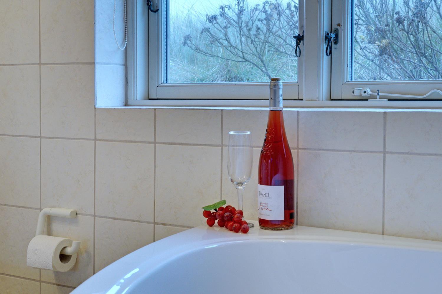 Hyggeligt feriehus i Henne Strand med spa, sauna og skøn terrasse tæt på stranden.