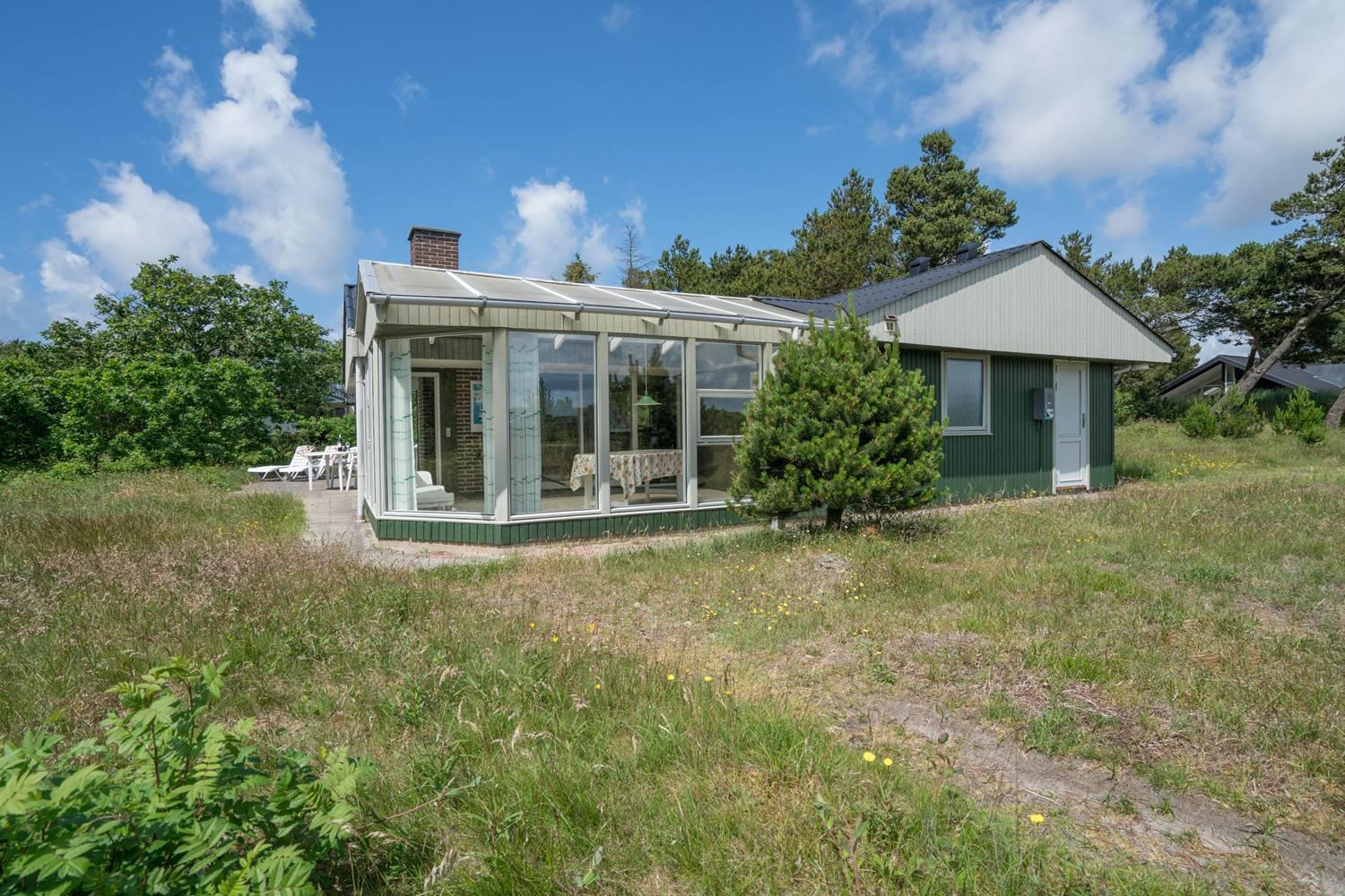 Hyggeligt feriehus tæt på Henne Strand med sauna, stor udestue og udsigt til fredet lyngområde.