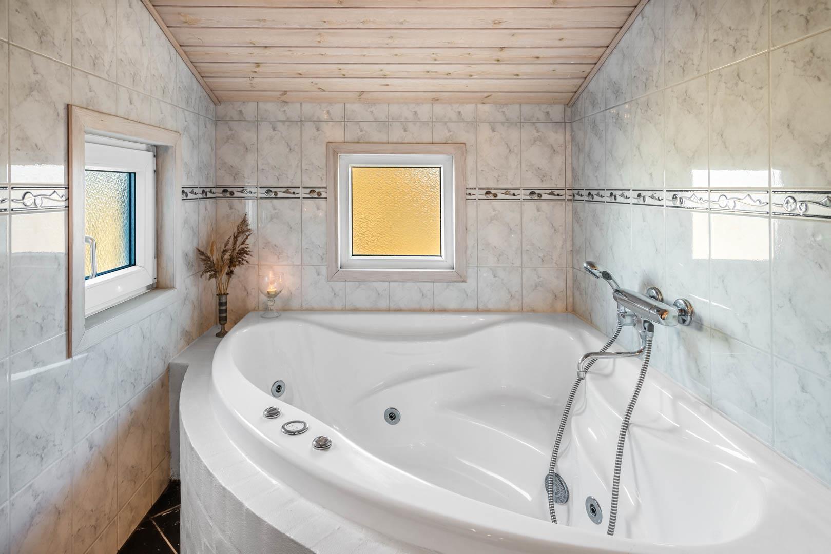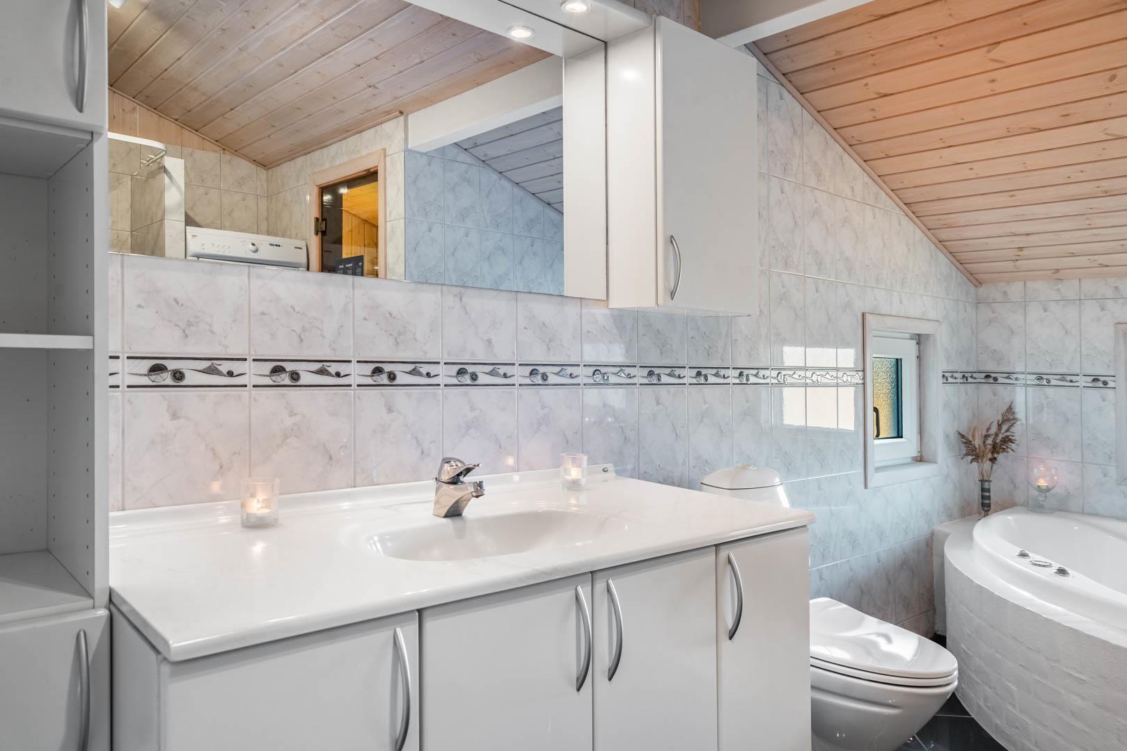 Feriehuset har tre gode soveværelser og et flot badeværelse med både spa og sauna – perfekt til velvære efter en dag ved stranden. Huset ligger fredeligt i en "gryde" med kort afstand til både havet og byen.