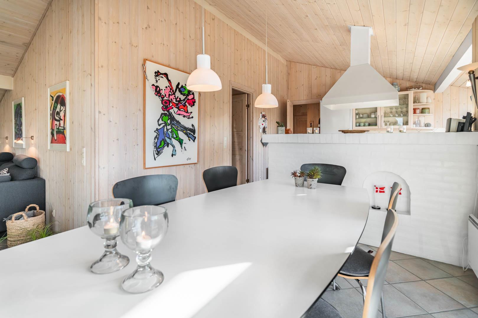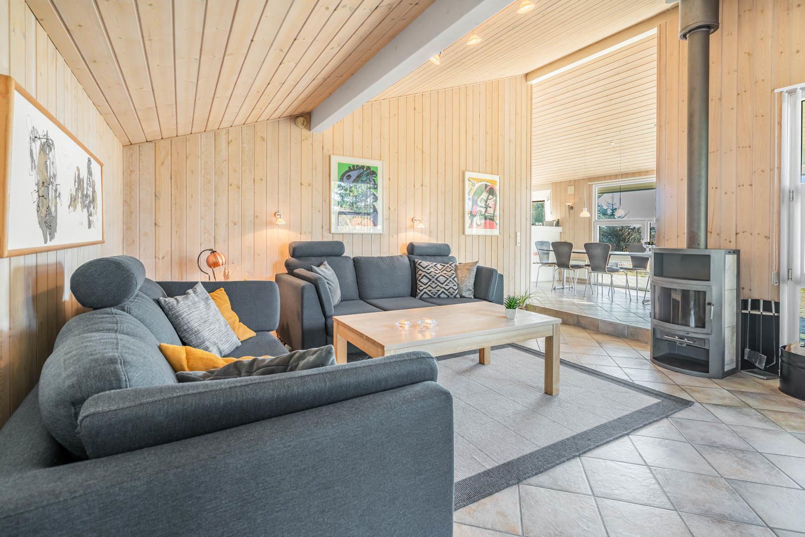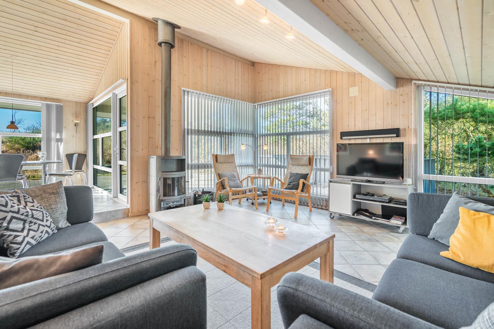 Dette velpassede sommerhus er indrettet med gode kvalitetsmøbler og har et flot køkken/alrum med direkte udgang til en dejlig, delvist overdækket terrasse. Den hyggelige stue er udstyret med komfortable møbler, Apple TV og Sonos-anlæg, så du kan nyde både afslapning og underholdning.