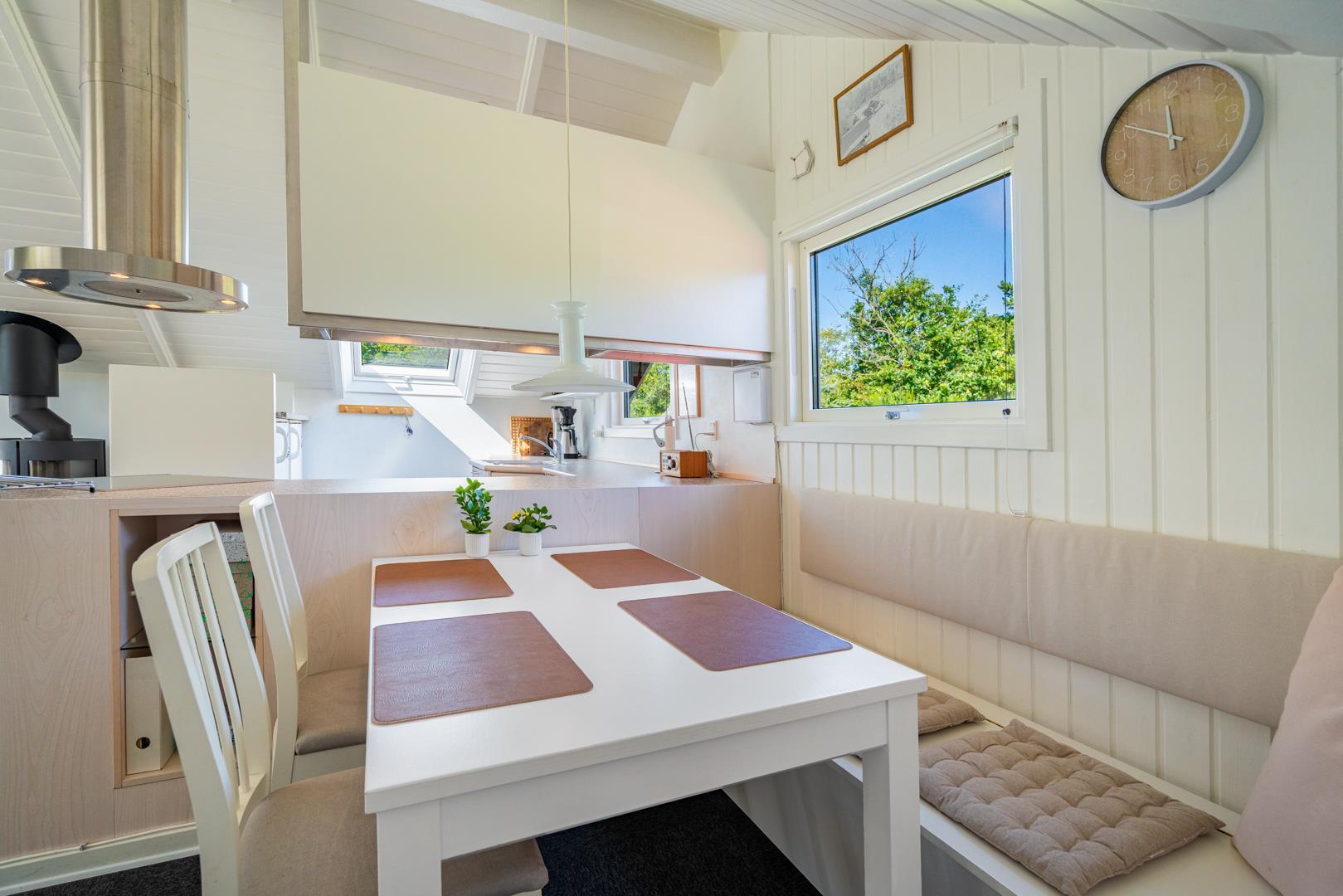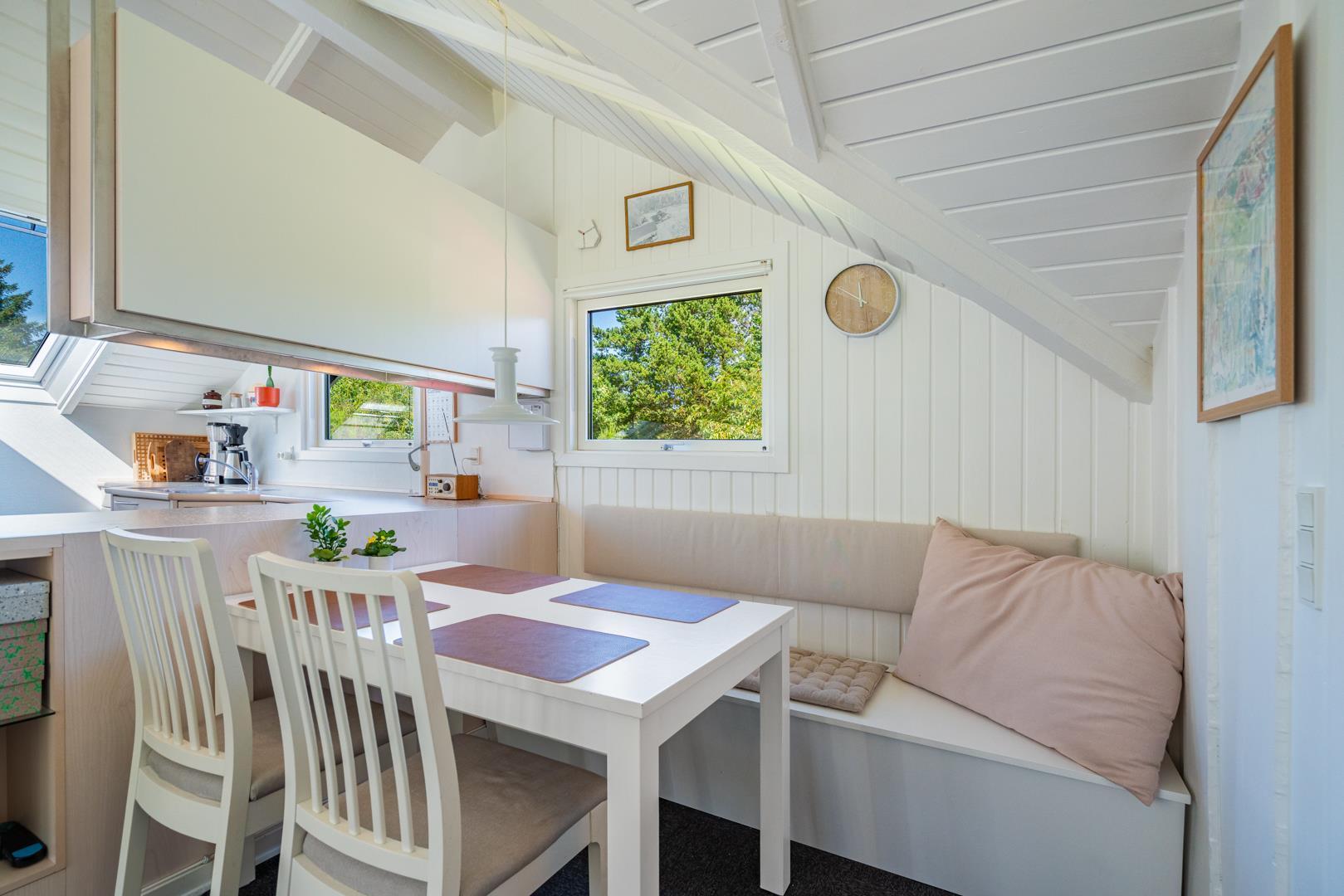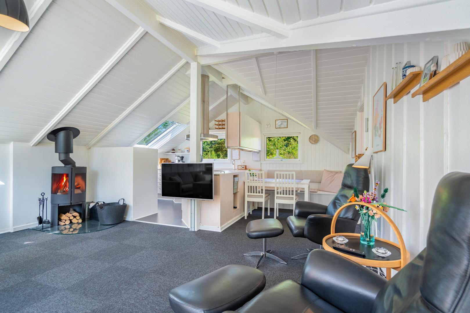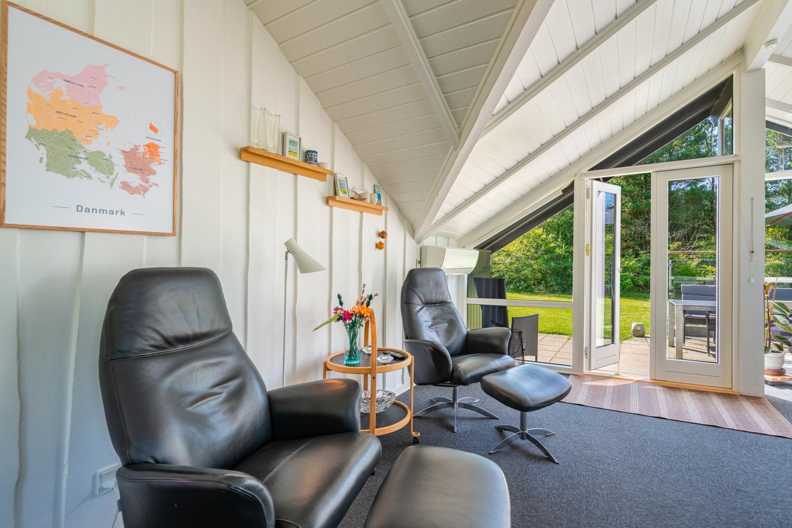 Hele familien kan samles i det rummelige alrum, hvor man kan slappe af i de gode komfortable møbler eller nyde varmen fra husets brændeovn. Huset har også en energivenlig varmepumpe, der sikrer den helt rigtige temperatur i huset.