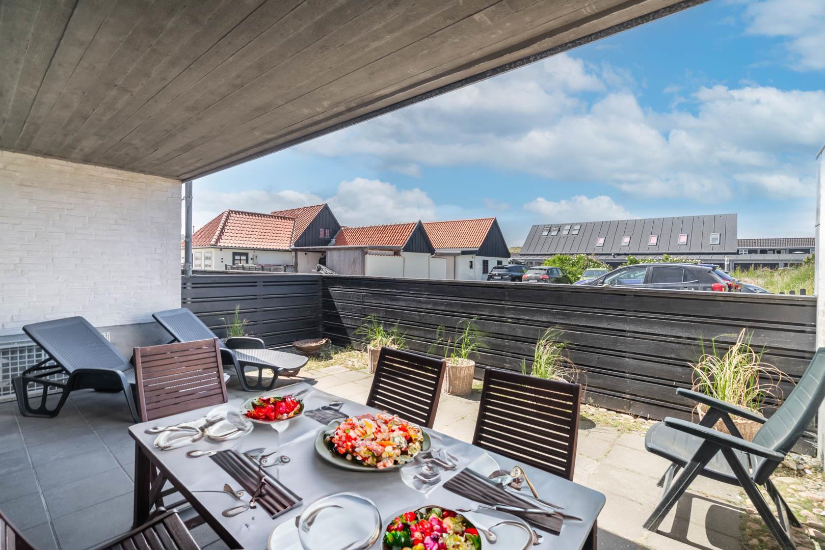 Lys kvalitetslejlighed i Henne Strand med 3 værelser, terrasse og balkon tæt på havet.