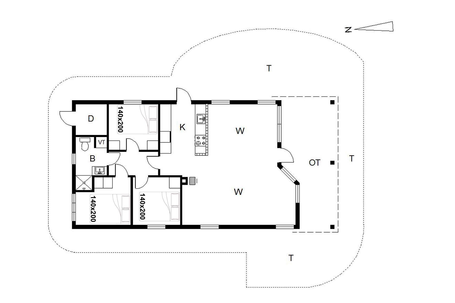 Sengestørrelser: 3 dobbeltsenge 140 x 200 cm.