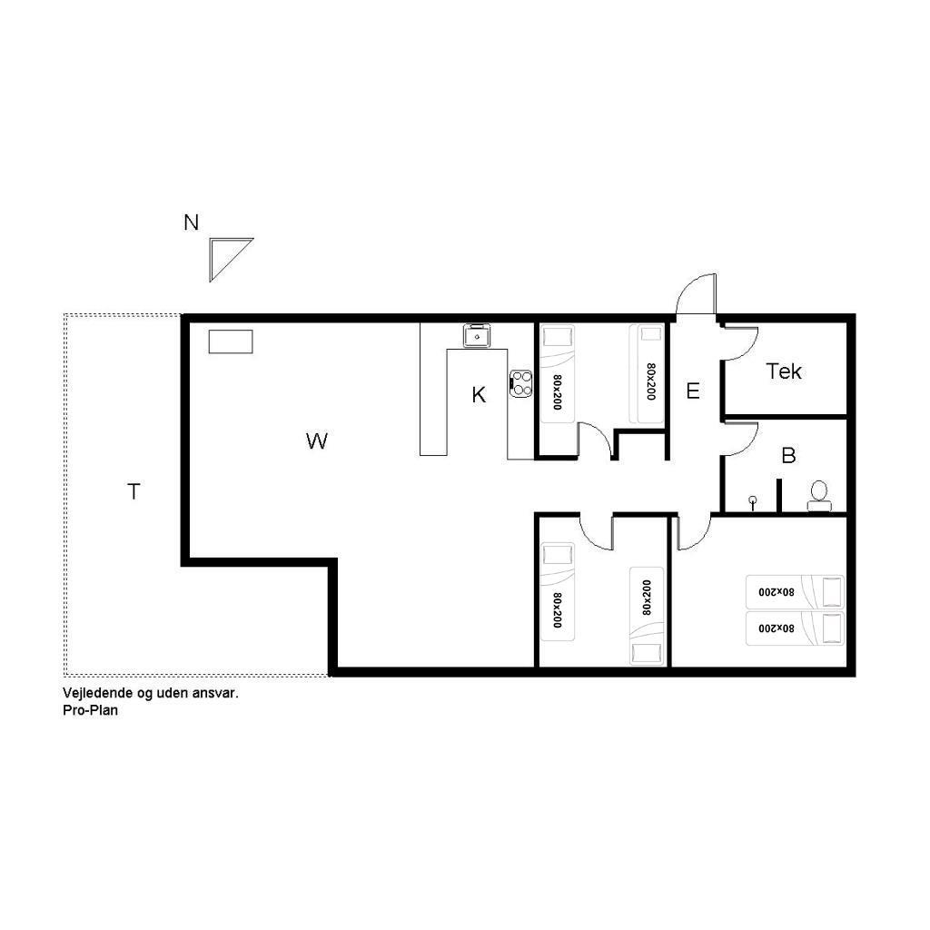 Sengestørrelse: 1 dobbeltseng med 2 madrasser 80 x 200 cm + 3 enkeltsenge 80 x 200 cm + 1 køjeseng 80 x 200 cm.