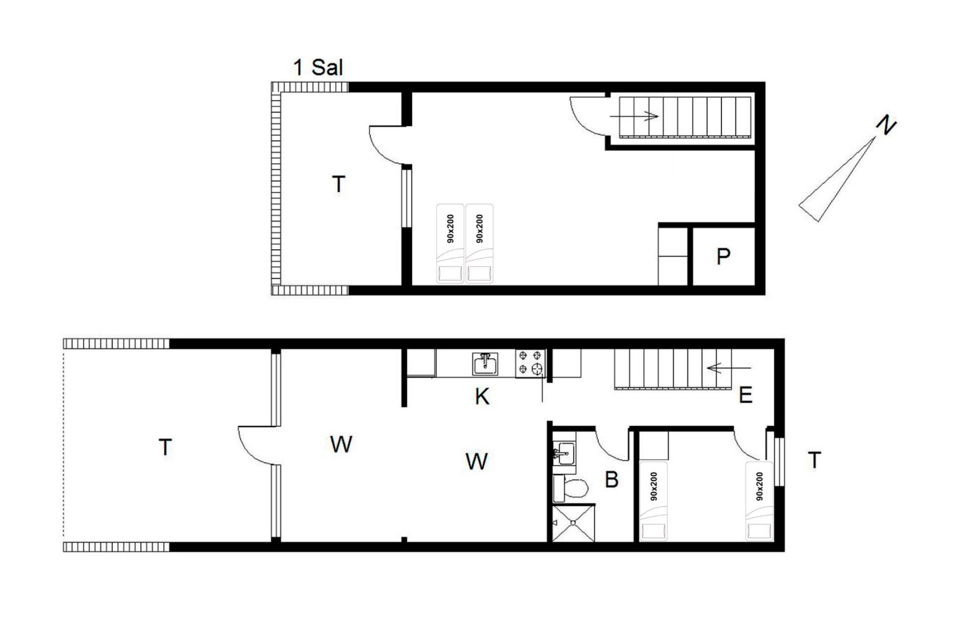 Sengestørrelser: 1 dobbeltseng med 2 madrasser 90 x 200 cm + 2 enkeltsenge 90 x 200 cm.