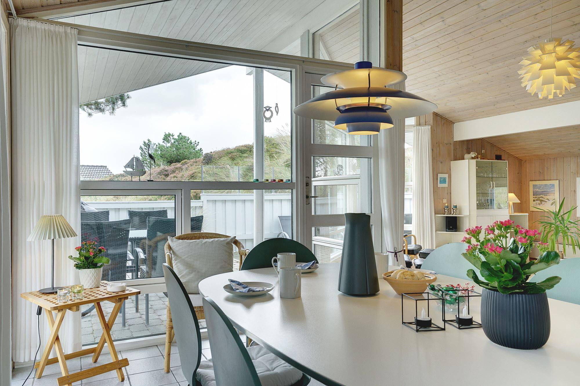 Velkommen til dette indbydende og personligt indrettede feriehus, som ligger smukt placeret på en kuperet naturgrund i det attraktive område ved Henne Strand. Her får du en perfekt kombination af komfort, hygge og nærhed til Vesterhavets fantastiske natur.
