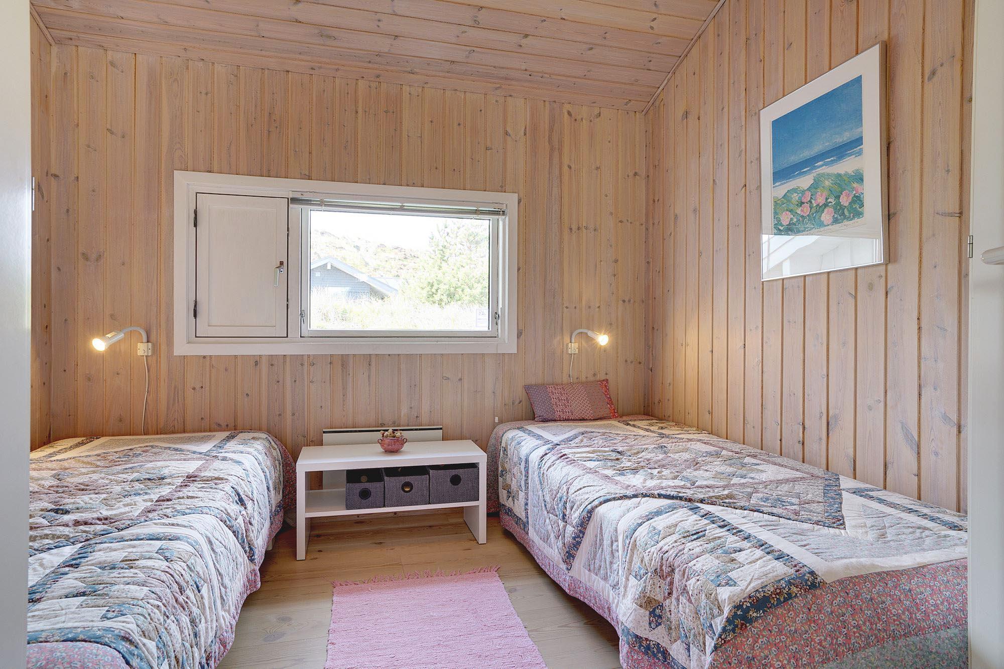 Sovepladserne er fordelt på to dobbeltværelser og to enkeltsenge – alle med madrasser i størrelsen 90 x 200 cm, som kan tilpasses efter behov.