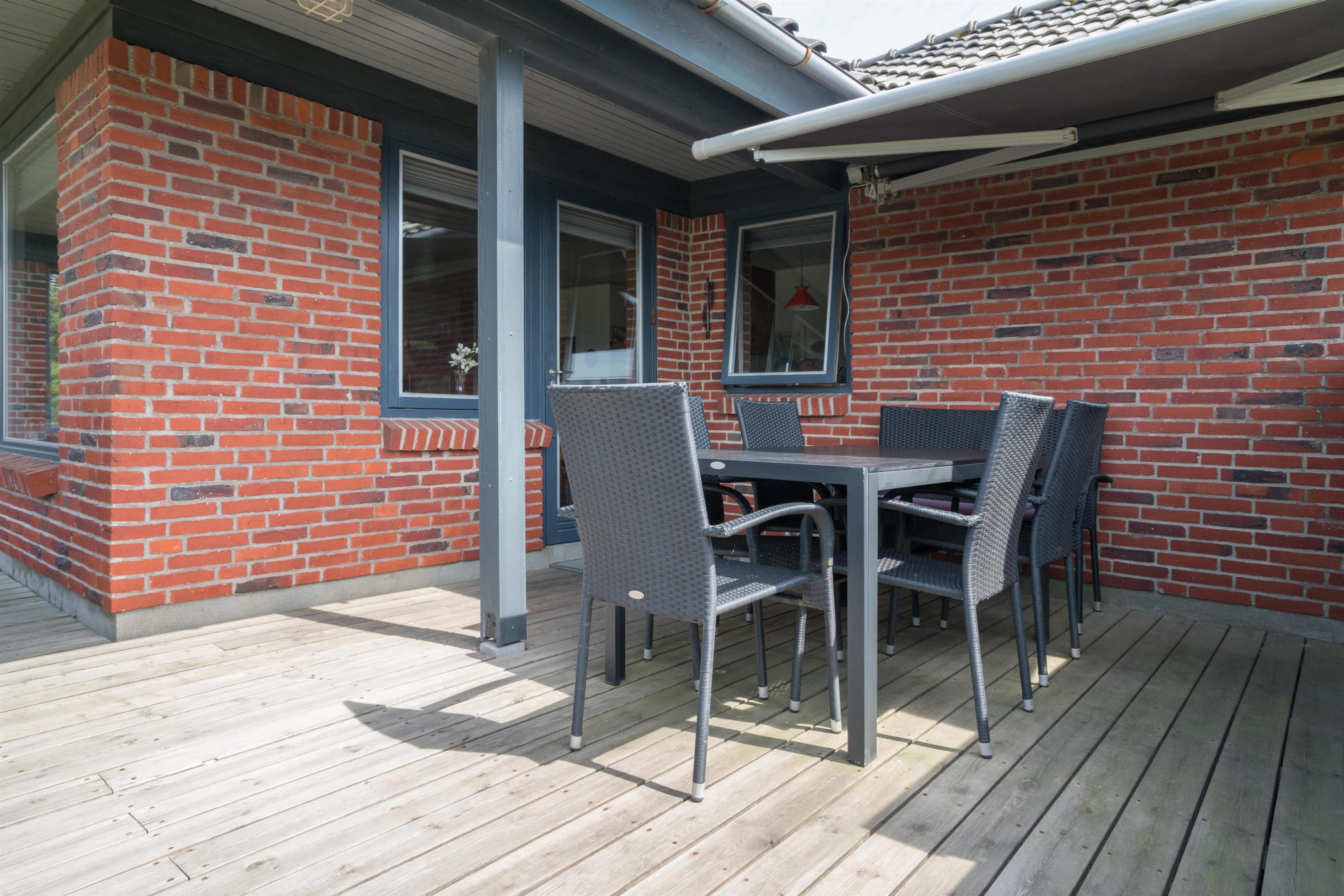 Hyggeligt feriehus med carport og lukket terrasse i Henne Strand, tæt på stranden og indkøb.