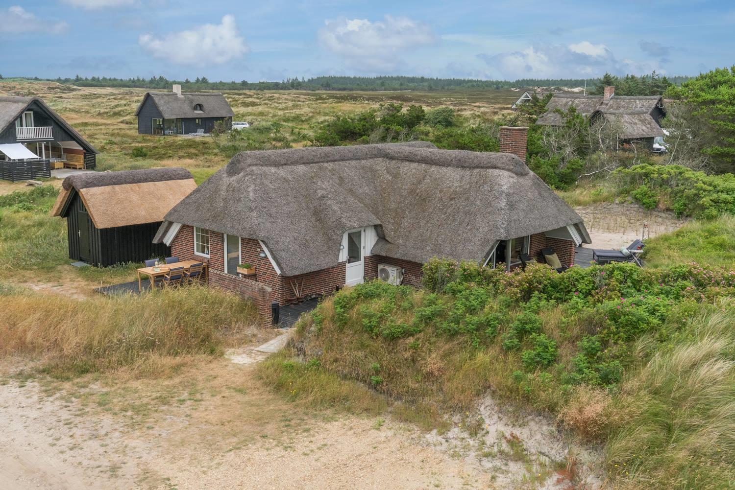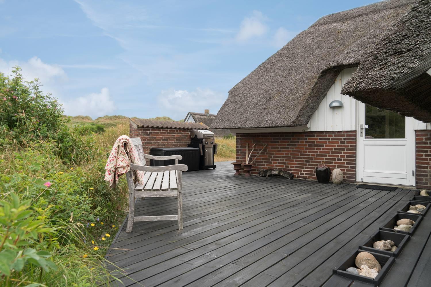 Hyggeligt feriehus i Henne Strand med nyrenoveret køkken, badeværelse og dejlig terrasse med klitudsigt.