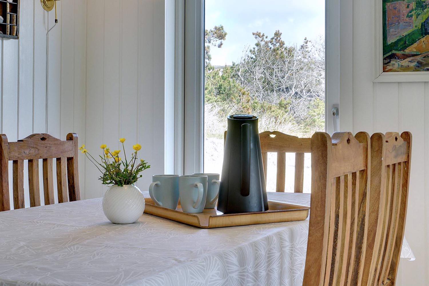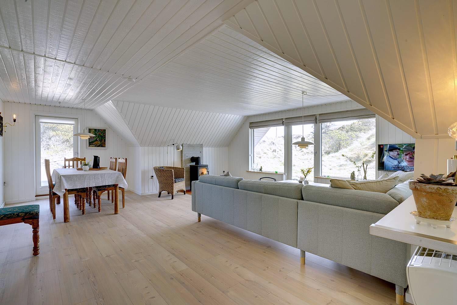 Uglevej 4 Henne Strand er beliggende på en klitgrund i et roligt område. Huset fremstår lyst og indbydende med lækkert nyt køkken og nyt badeværelse med gulvvarme. Fra både stuen og køkkenet er der udgang til den dejlige træterrasse som omkranser huset. Skur med plads til medbragte cykler. Her fra kan naturen og udsigten over området nydes i fulde drag. Et perfekt feriehus hvor ferien kan tilbringes i hyggelige og fredelige omgivelser.