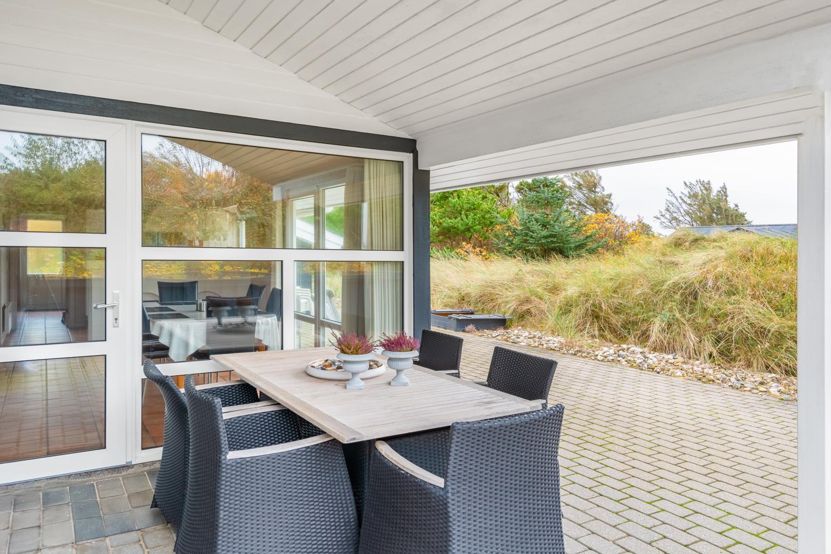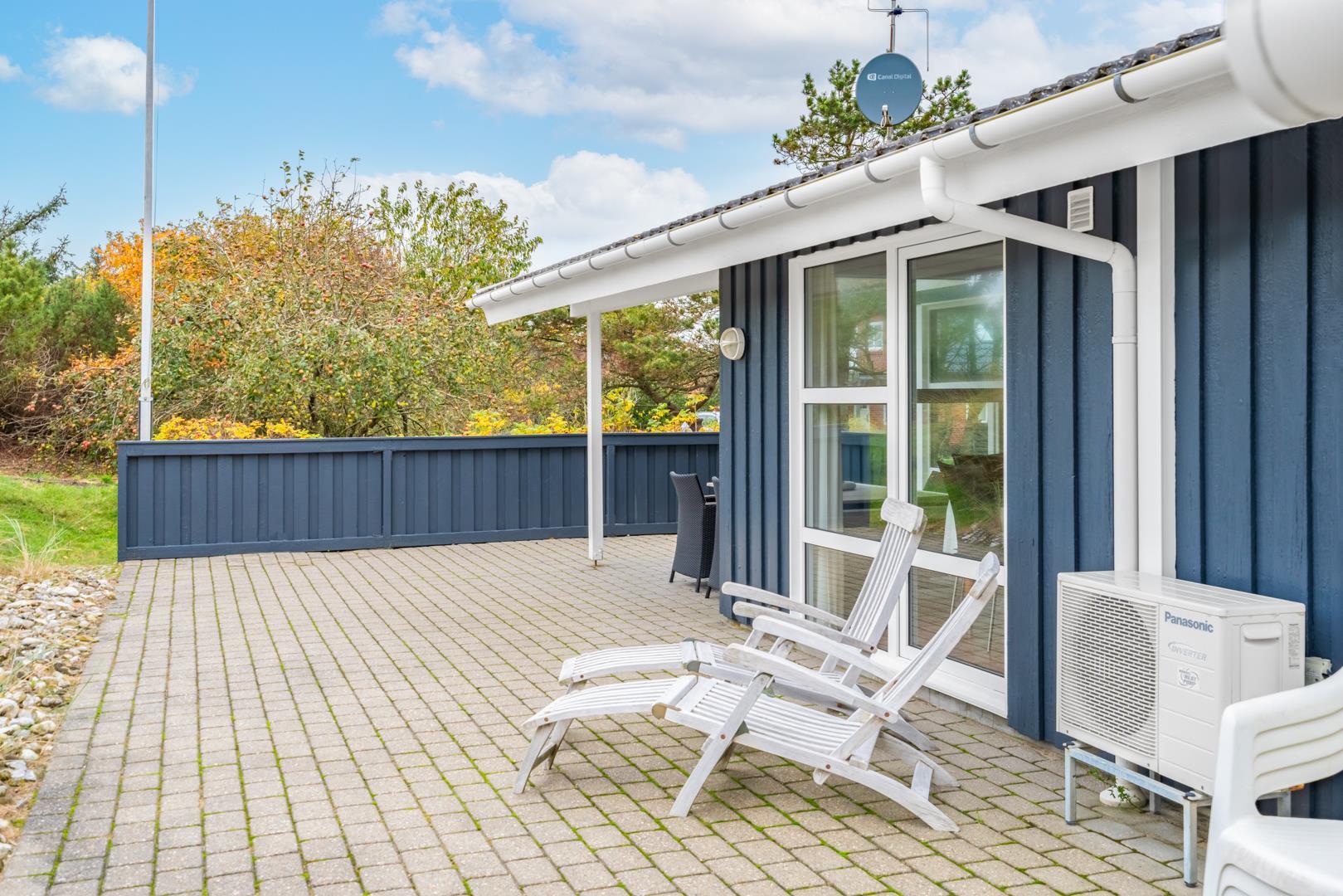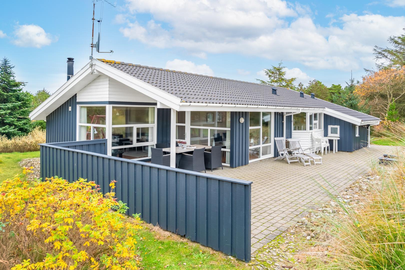 Velholdt kvalitetshus med sauna og spa nær Henne Strand, perfekt til afslapning hele dagen på overdækket terrasse.