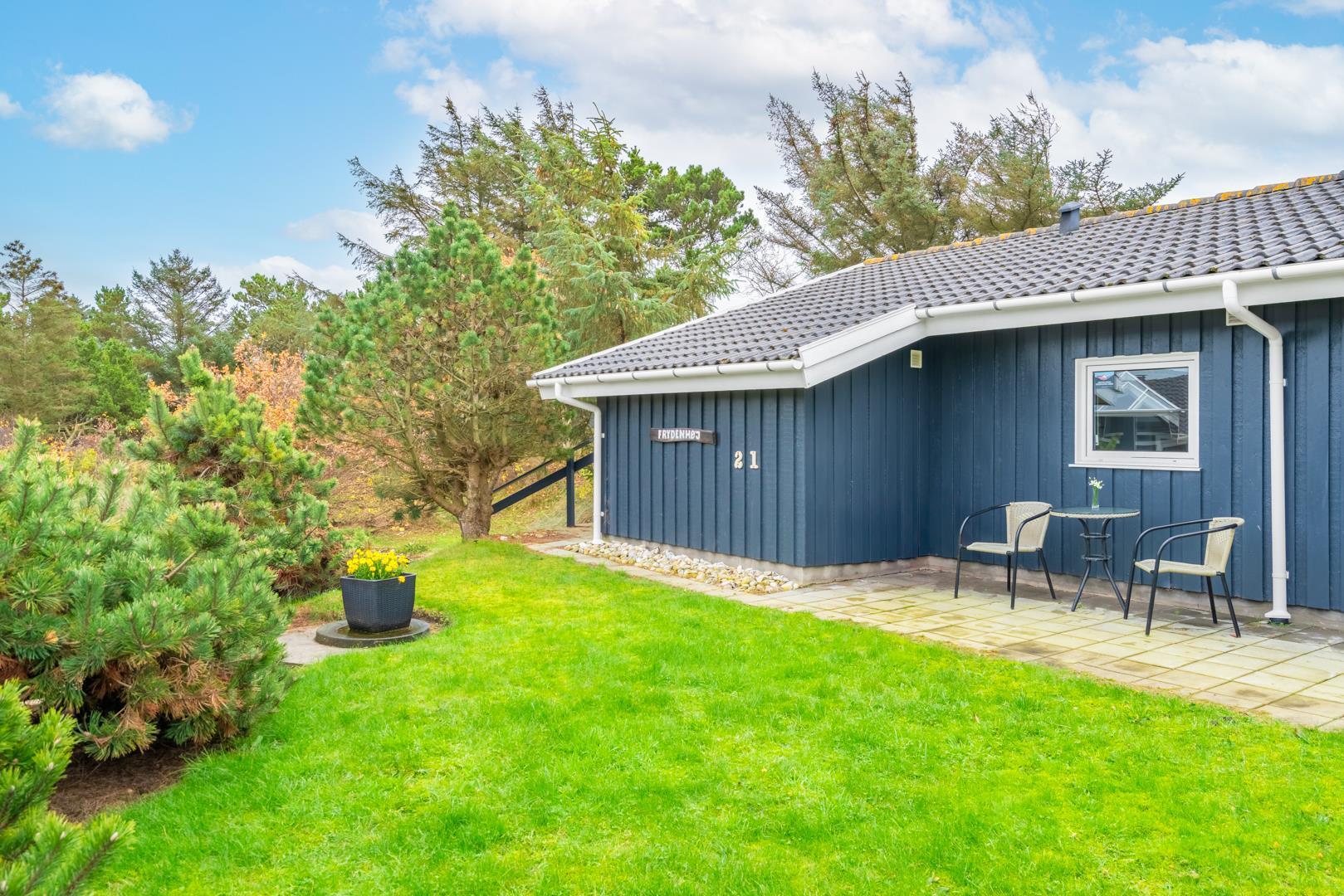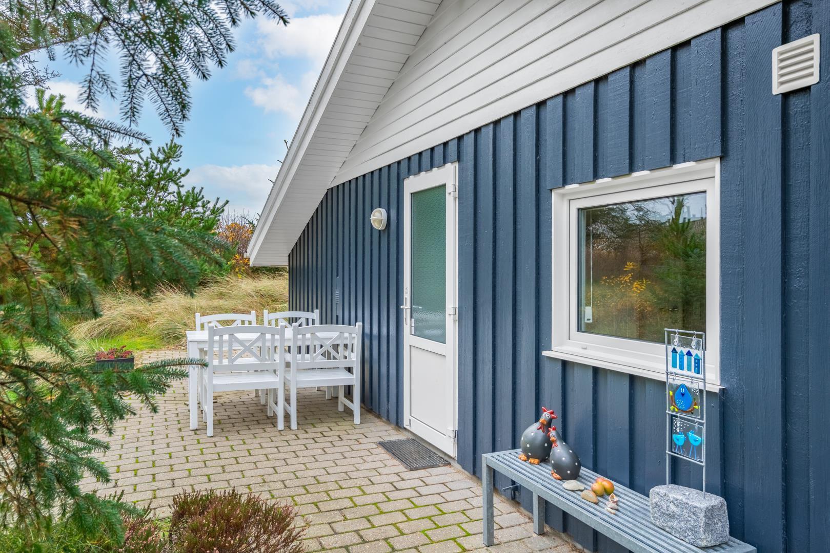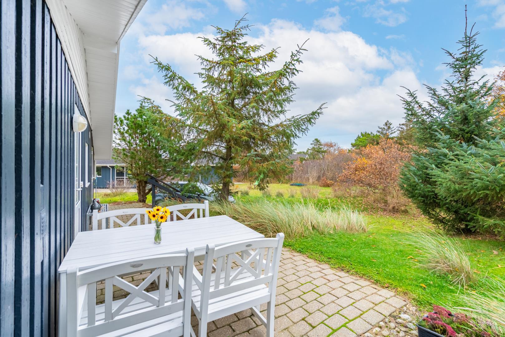 Velholdt kvalitetshus med sauna og spa nær Henne Strand, perfekt til afslapning hele dagen på overdækket terrasse.