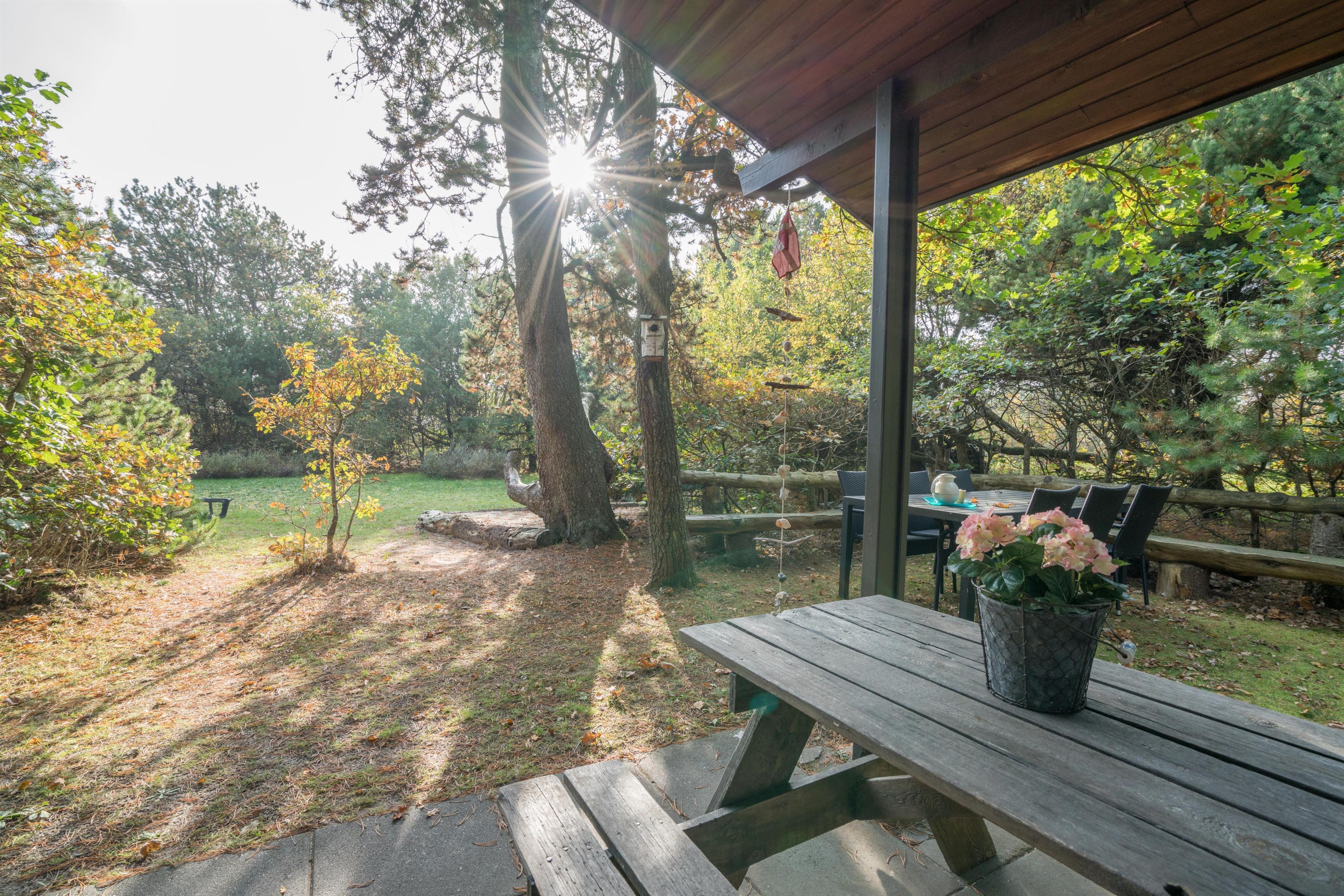 Hyggeligt feriehus på børnevenlig naturgrund med sandkasse, terrasse og brændeovn nær Henne Strand.