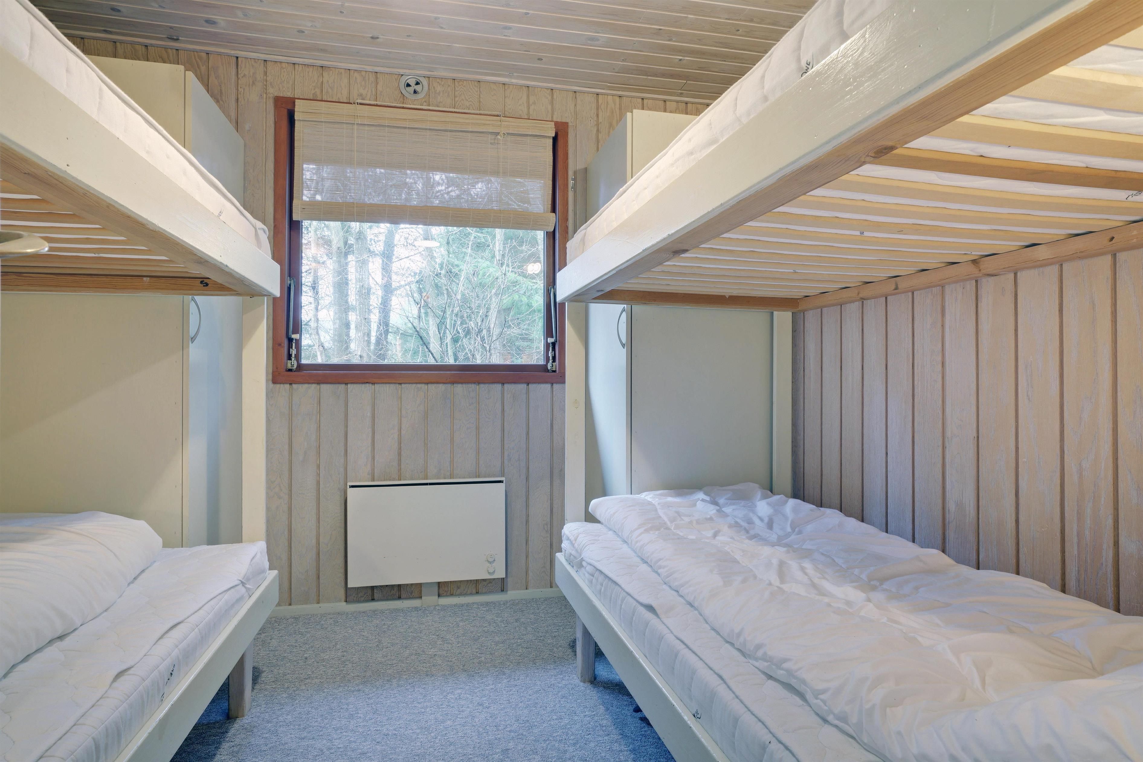 Sengestørrelser: 1 dobbeltseng 140 x 200 cm + 3 køjesenge 80 x 190 cm.